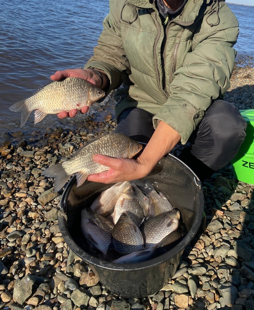 После горной заскочил сегодня на Вятское, встретил знакомых. У них более менее и карасей нормально было и лещик мелкий радовал постоянно поклёвками.