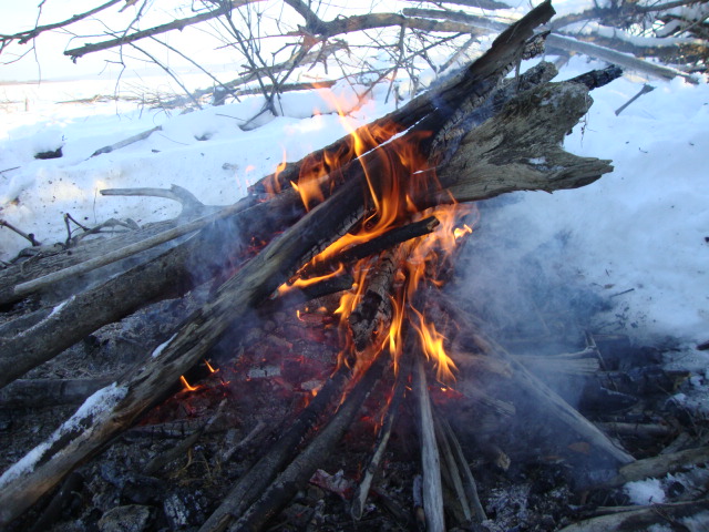 Так впечатлился эмоциями от первой щуки, что пошёл к костру сушить носки и обувь, так как нога стала подмерзать, а всего 12 часов...
