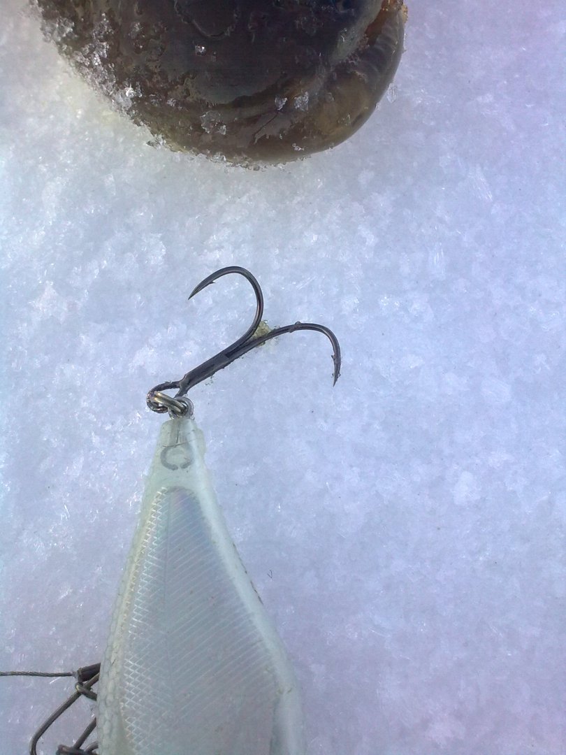 Взвесил. Всего 2,5 кг. Это просто тройник слабоватый оказался, благо второй крючок удержал.