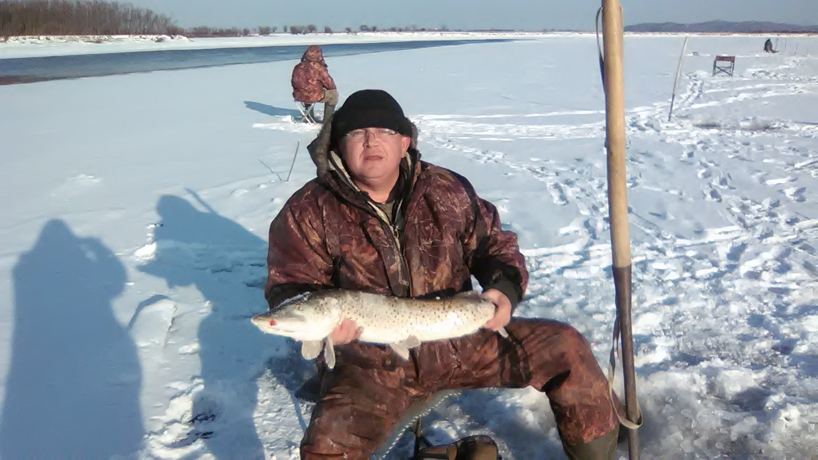 Мои поздравления, однозначно успех вых дня!!!Вечер добрый форумчане. Сегодня выехал на рыбалку пораньше, что бы на рассвете уже седеть на лунках. Доехав до сворота с асфальта, был расстроен, дороги нет, всё замело. Дождавшись рассвета, увидел такого же как я рыбака джиповода, решили пробивать дорогу заново. Вместо запланированного рассвета, на лунках я оказался в 9:30. Результат не заставил себя долго ждать. Семь не больших, четыре шнурка были отпущены за мамкой и на тебе, мамка не заставила себя долго ждать и потянула на 4,470 кг, зачётный экземпляр!! Доволен я сегодняшним результатом.