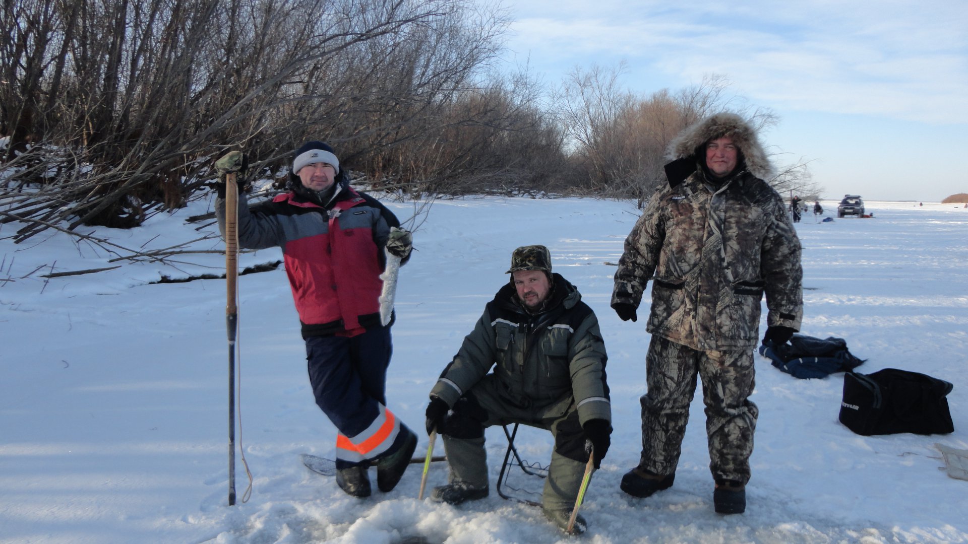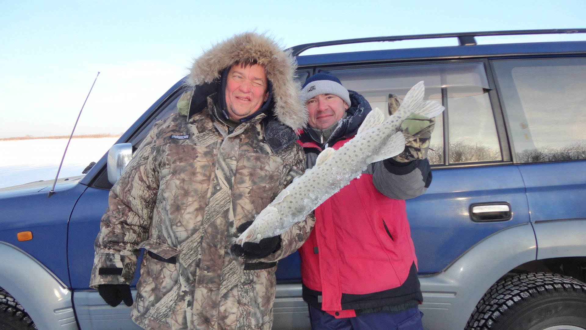 Глянул сегодня утром на термометр: - 33. Мда-а, серьёзно.Глянул в окно на Амур - на нём белая пелена позёмки.Значит ещё и сильный ветер.Погода прям шепчет - какая нафиг рыбалка, сиди дома.Ну уж нет,морозом и ветром меня не напугать.Тем более сегодня последний день отпуска.По прогнозу вчера и сегодня - устойчивое высокое давление, луна на прибыль.По всем приметам самая "щучья" погода.Но вот практика показала, что у щуки свои какие то законы.Клёва небыло.Вчера 2 штуки и один сход.Сегодня 2 и один подход.Слабовато.хорошо хоть щука крупная.