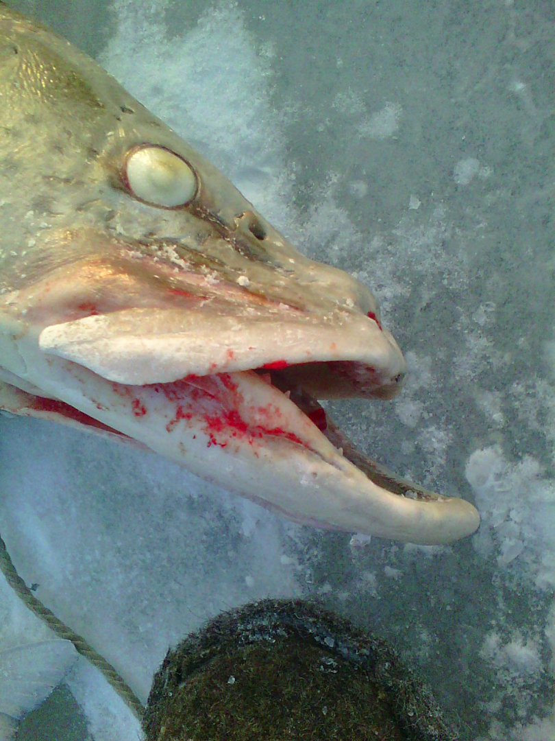 Похоже,деформированная челюсть нисколько не мешала питаться этой мамке.Я как то летом на спин ловил шучку невеликого размера,так у неё верхняя челюсть была вдоль распорота,видимо,у кого то она сошла с тройника.Даже такая травма не помешала ей хапнуть мою вертушку.Вчера товарищ поймал вот такого монстра