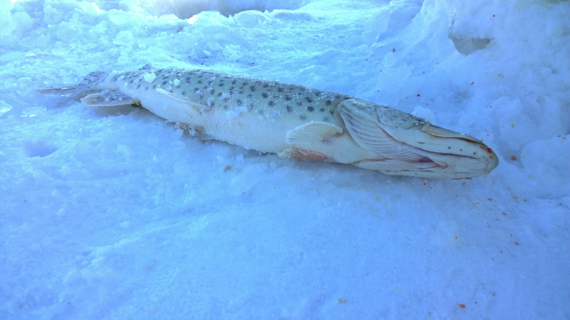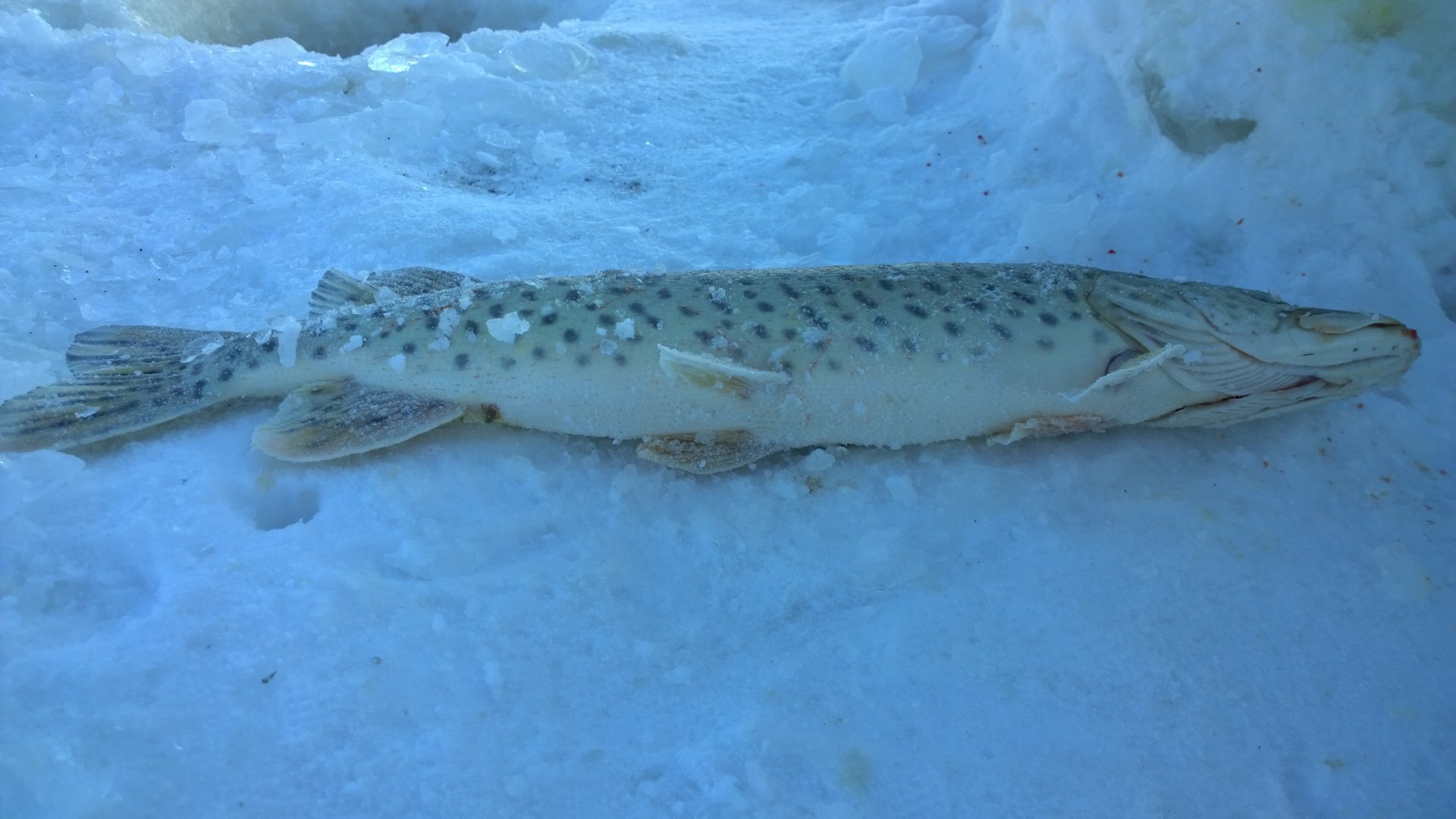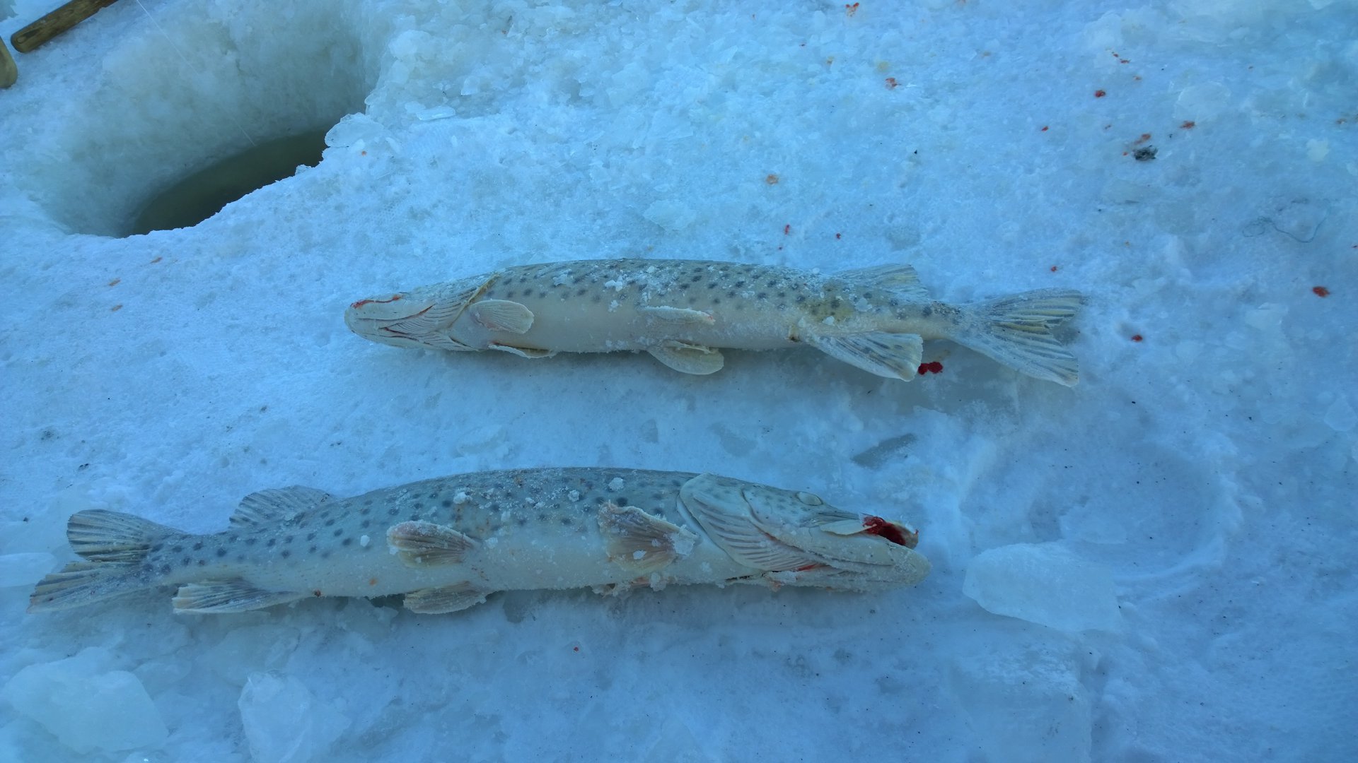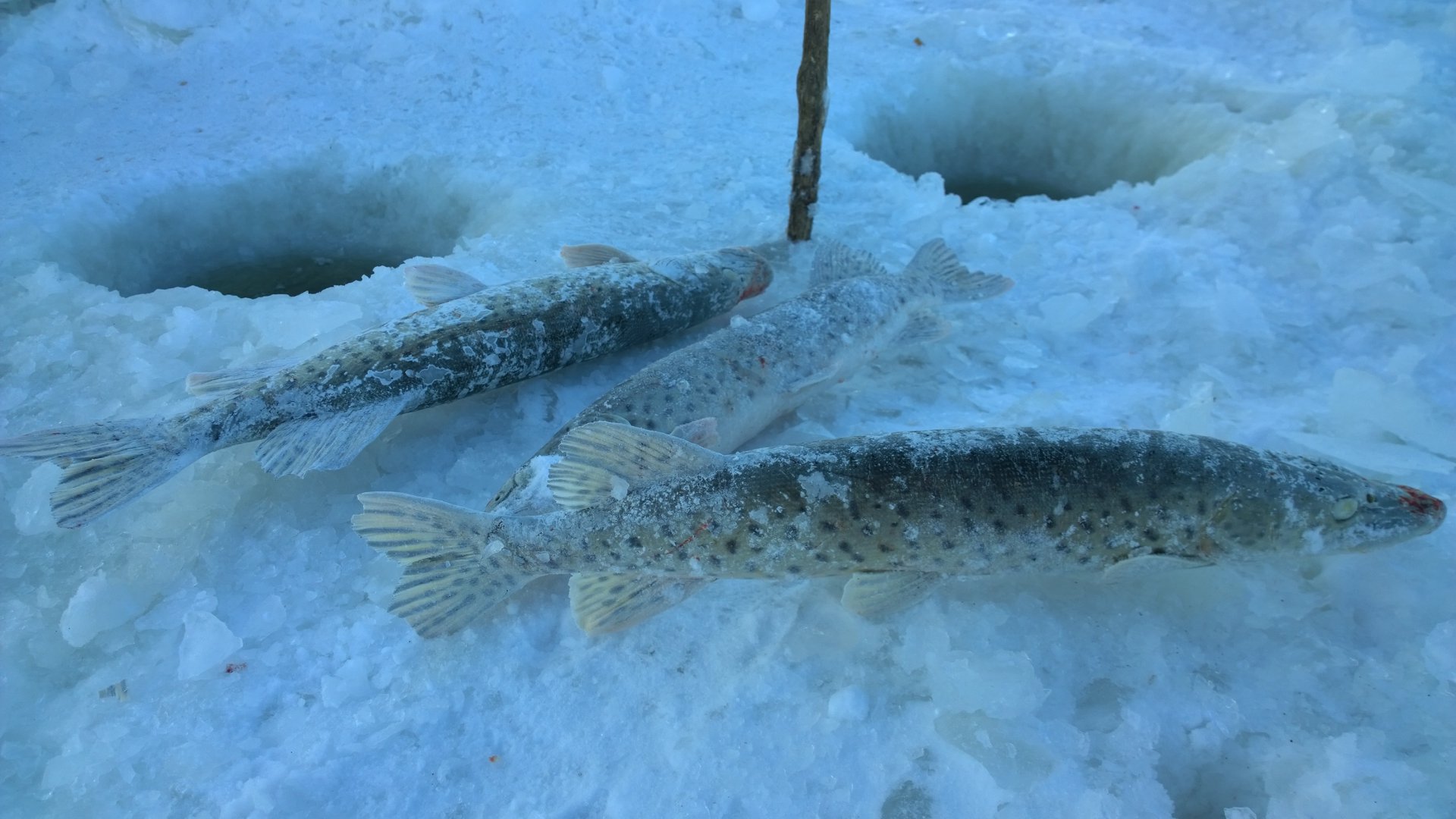 Лунки по нанайским размерам деланые (нехилые), поэтому борьба была не долгой да и щука не гигантской.