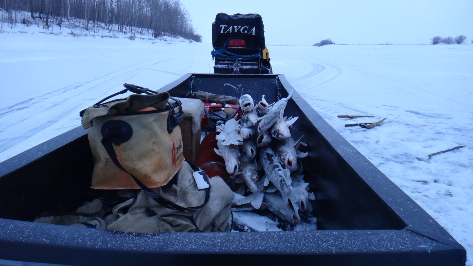 Закрыл я снегоходный сезон, а душа просится на рыбалку, поэтому приходится ходить пешком :) Сегодня снова был на реке. Ездил на поиски сига. До куда смог, доехал на машине, а дальше километра 2 пехом. На место добрался в одиннадцатом часу. Рыбачил на сиговку с отводным поводком, на который подсаживал резку из чебака. Подпуска не ставил. В этот раз щуки не было, зато сиг порадовал.