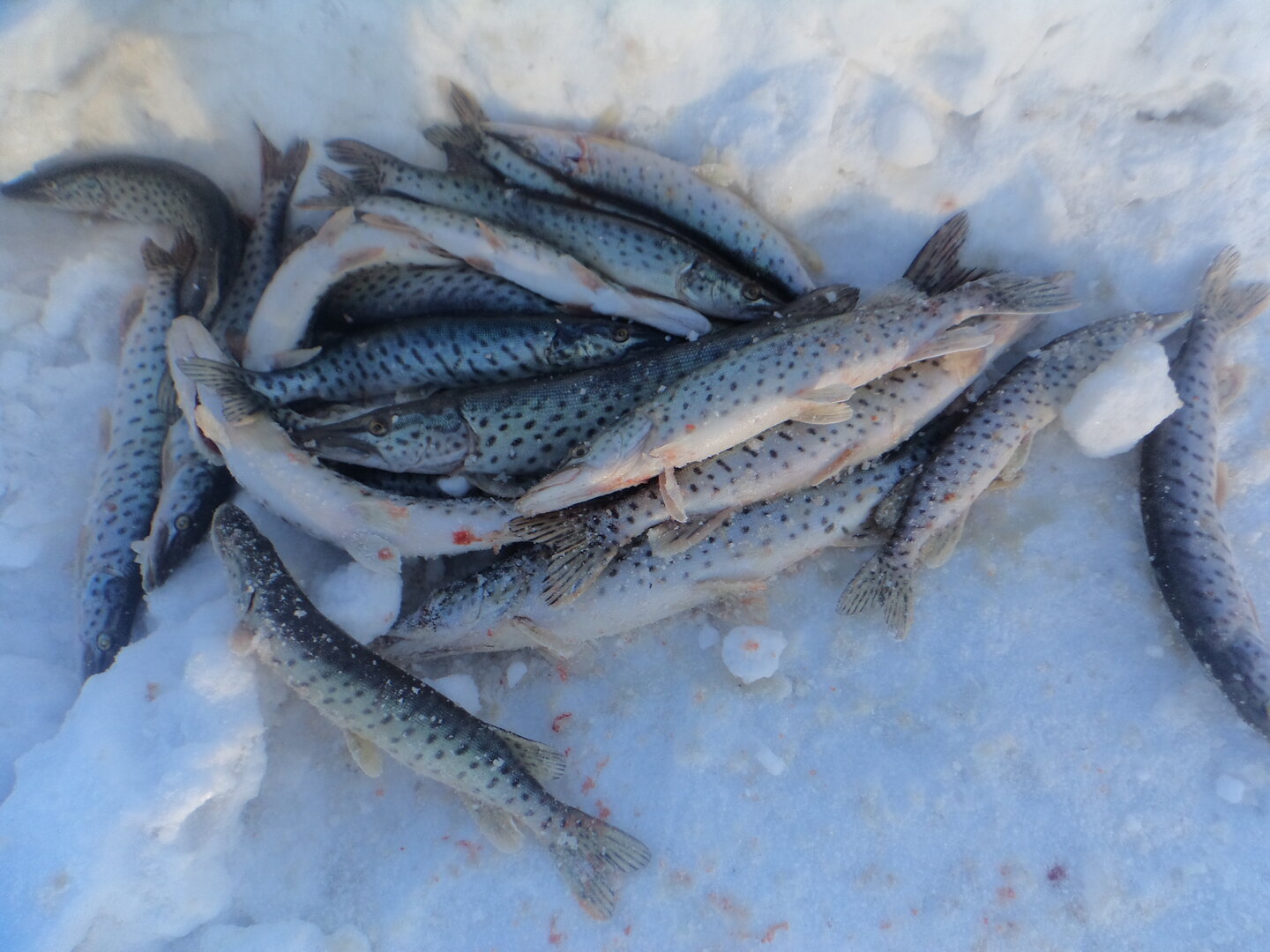 У каждого рыбака имелась примерно такая кучка пойманной щуки.