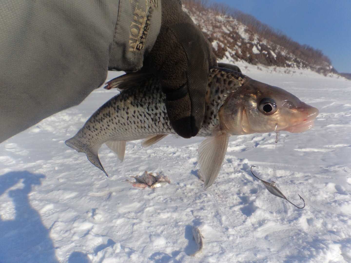 Продолжаю осваивать сиговую рыбалку. Сегодня снова был на Амуре. Не экспериментировал: ловил на сиговочку с отводным поводком. В качестве «сопли» использовал резку из чебака и кальмар. Резка из чебака сегодня работала значительно лучше. Первый сижара взялся около 10 утра.