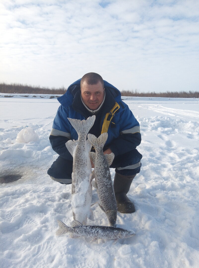Прогнозы на плохую рыбалку и в этот раз оправдывались, хотя я уехал на снегоходе порядка 30-ти километров вверх по Амуру от города и на всех рыболовных местах были любители зимней пыбалки. Стояли и выше моста, и на выходе из Прокопа, и против Верхней Экони, и на выходе Сандинки , куда пробили дорогу на автомобилях и их было порядка 15 штук. В основном рыбачили на «хапужки», а те, которые ловили на крабики, ловили в основном карандашей грамм по 100-150. Мне это было неинтересно. Проехав Сандинку, я еще переговорил с несколькими рыбаками, которые обосновались несколько выше выхода этой протоки, но и у них был результат, но только из мелкой щуки. Я проехал на выход протоки Голбан, которая уходит в сторону г. Амурска и решил попробовать на ней. Там как раз такое место, где образуется небольшой свал от основного течения, и где образуется затишок по течению, там глубина подо льдом порядка 70 см, что меня абсолютно устроило. Просидел пару часов безрезультатно, но куда либо перемещаться уже не было желания и вот в 14.30 подход, который я реализовал и щучька под трешку лежит у меня на капоте мопеда. Ура, не барабан.