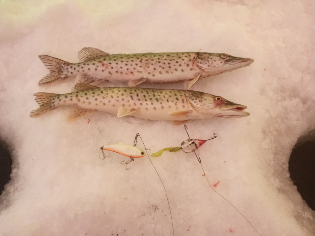 У меня сегодня: три шнурка. Два утоплены самым изуверским способом (как обычно) - башкой вниз. Третий был настолько мелким, что не пробился тройником и я его подсечкой закинул в ствол лунки. Он пытался выпрыгнуть из неё на лёд секунд 10, но воронка лунки высокая и гравитация - победила. Ржака. Таки сбежал, летучая рыба))). Было ещё два "нешнурковых" подхода (возможно - одна два раза интересовалась), но - не засеклась: сходы на подсечке. Тройники - есличо - вострые))).