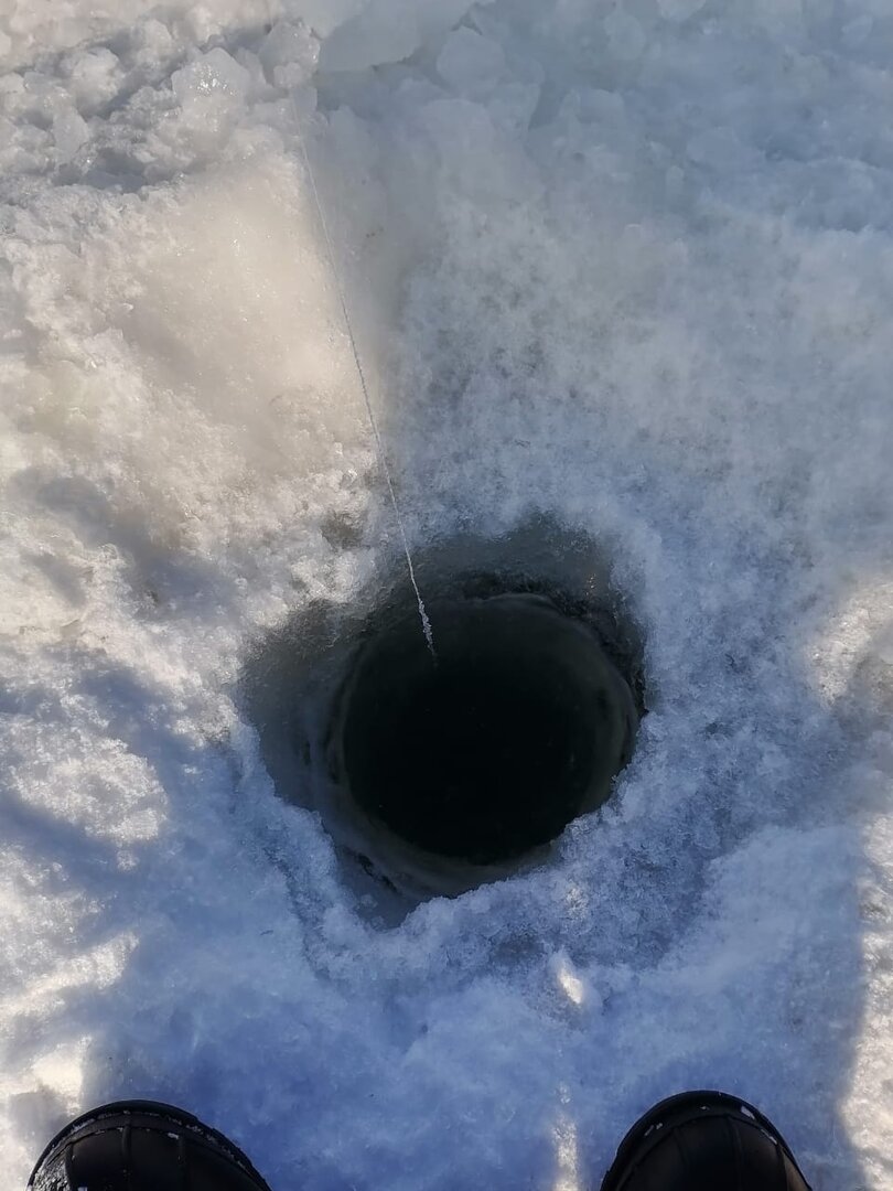 Всем привет. Как говорится утро сразу не задалось. Собрался ехать, завел машину, прогрел и поехал, через пару километров понял, что документы остались в другой куртке. Делать нечего, поехал обратно домой, супруга говорит все можешь не ехать вернулся же. Но как же не поехать выходной ведь. Так как уже было в районе 9.30 решено было поехать на Пемзу. Приехал, перешёл на правый берег, начал буриться, а ножи севшие, что за непруза. Откручиваю ножи, беру брусок, немного правлю и вот бурят как из магазина. Ну думаю сейчас дело пойдет. Машу на два участка в 100 и 80 размерах. Подход, трес фрикциона, завожу в лунку и уже на поверхности мамка выплевывает приманку, а богорит в 3 метрах. Короче хорек однако. Правда было ещё два невнятных тычка и все, в 14.30 был уже около машины. Но я не расстраиваюсь, свежим воздухом подышал, физические нагрузки и положительные эмоции получил, а рыба это просто приятный бонус.