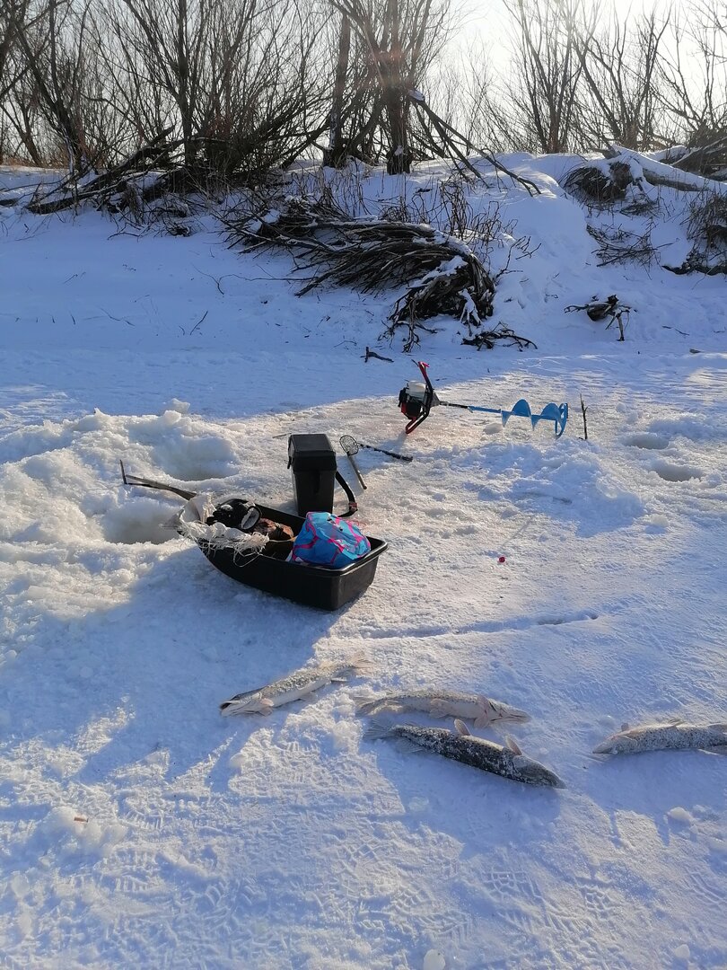 Прокатился с сыном и зятем сегодня вниз по Амуру. Приехали на место поздновато, часов в 10. Пробурились, и тишина. Часов в 11 поймал первую, вскоре вторую, и третий сход в лунке. Так ничего , кило на 3. У меня работали краб, ратлин в игноре. Сын сидел немного ниже, у него только красноголовик ратлин работал, краб в игноре. После схода вообще тишина. Пошел искать , ещё выхватил одну. И часа в 3 ещё одну. Итого 4. Сын поймал 2, зять одну. Его друг ни одной. Погода сегодня прелесть, не холодно. С 15 до отъезда ни одного царапка. У соседей тоже. В 17 поехали домой. Замечательно день прошел.