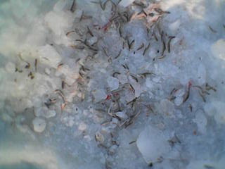 Сегодня поехали, рыбу нашли сразу, место для нас новое. Глубина подо льдом метр. Брала и на крабы и на ратлины весь день с перерывами на по́лчаса. Вся от кг до 2х. Много сходов(цепляется за нижний край лунки) бур ручной на 150, заводить не с первого раза приходится.