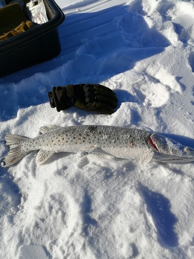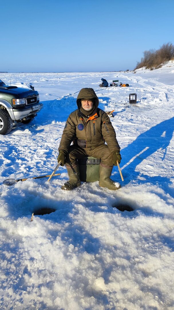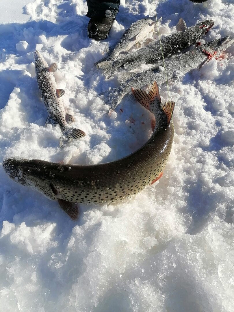 Ухожу от парней ниже метров на 150, бурю новые лунки. В одной Немо, во второй краб .В это время Дима поймал щуку. Полегчало. В полпервого на Немо вытаскиваю на 2,5. Отпустило. Не хорек ! )))