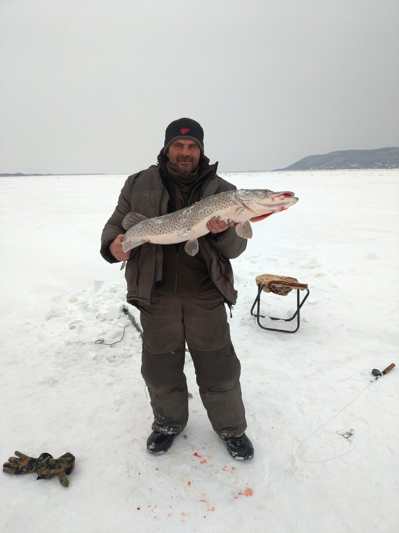 Был сегодня на просторах Амура. На леша опять не поехал. Поймал две, эта самая большая. Удочка 60 см, взяла на краба. Потом была еще одна на белого ратлина, красноголовика. Один обидный сход в лунуе, по ощущениям больше первой и одна не реализованная поклевка и все. Нас было четверо, двое поймали по две, вое остались с хорьком