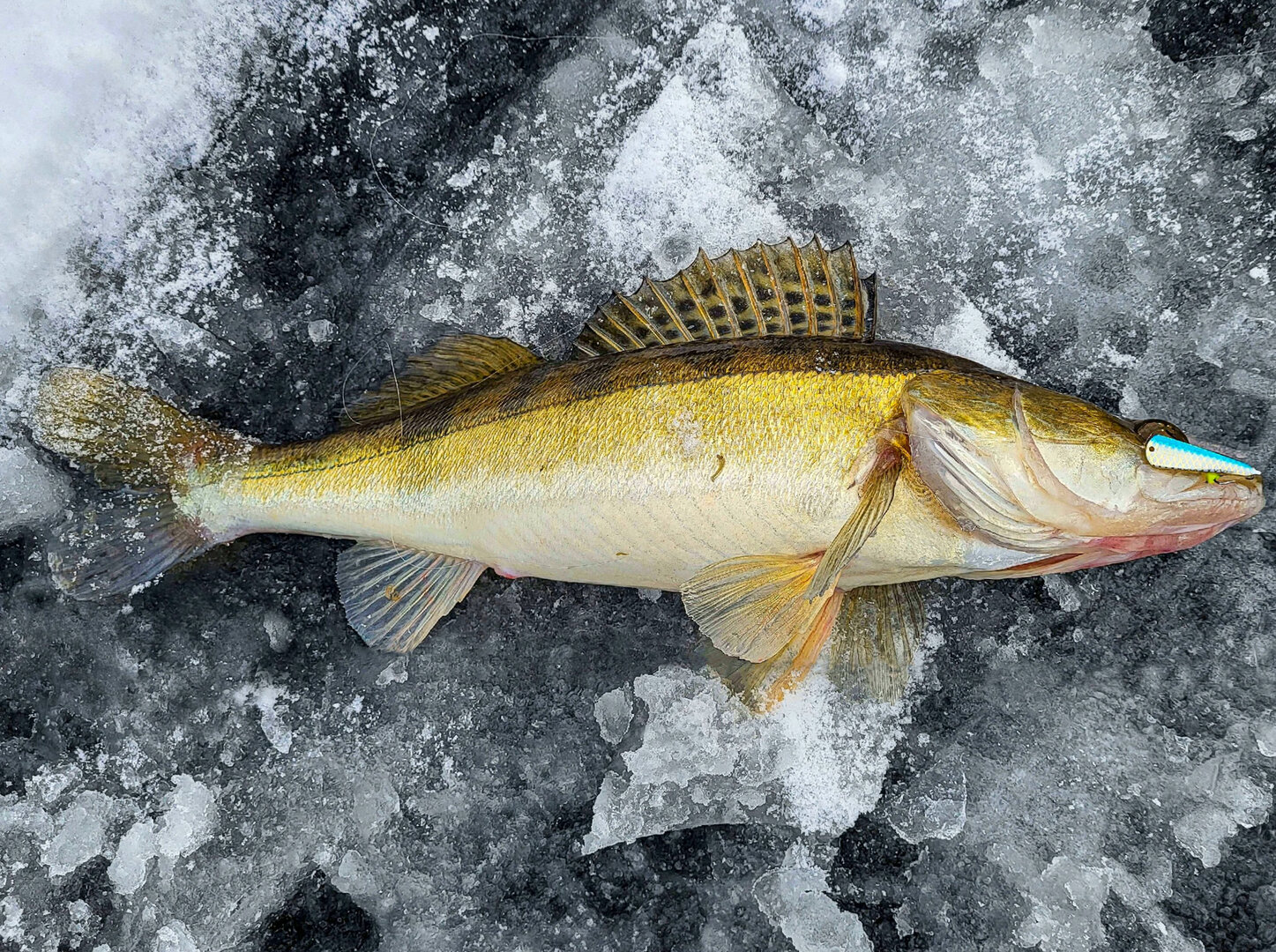 Честно говоря, сегодня была поймана не одна, а можно сказать полторы. Ещё одну щуку (примерно полторашку) я даже на лёд смог извлечь, но...