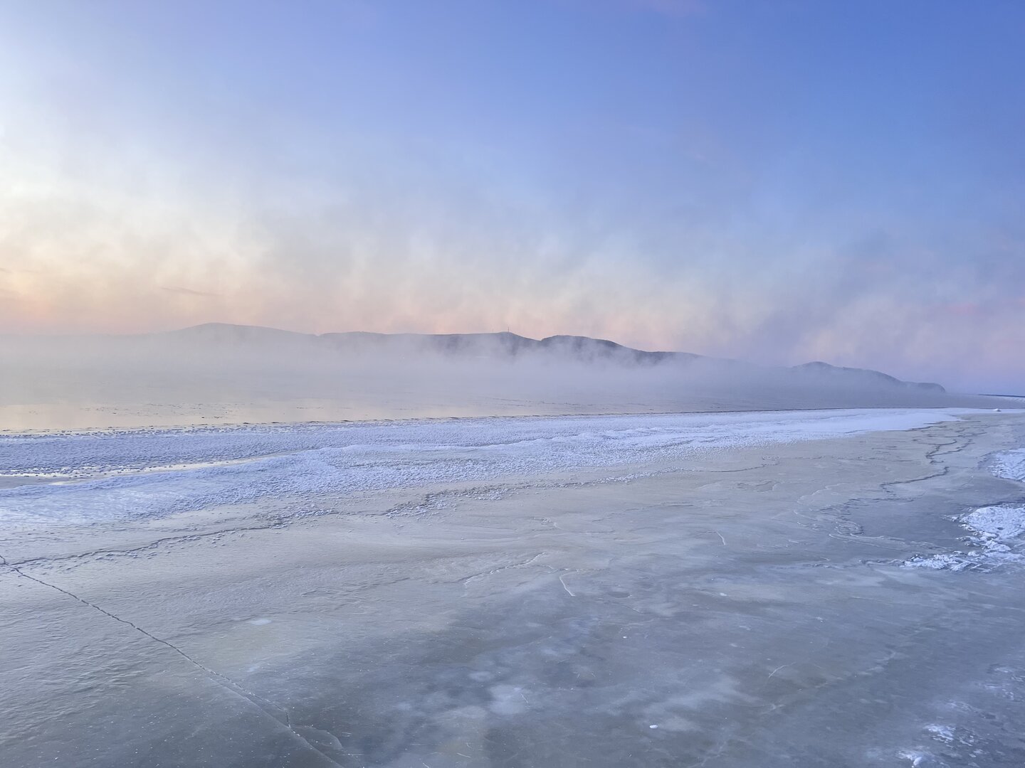 Метров сто от берега парит. Хотя вчера машины перемещались в пространстве.