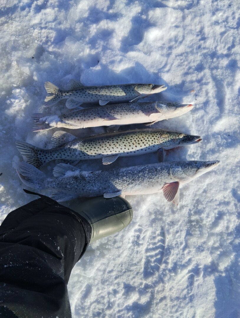 Всех с праздиком! Сегодня с 8:00 до 10:30. Четыре штуки. Две ушли в лунке. Были ещё поклёвки. Работала береговая лунка. 40 см. глубина. Старый Амур.
