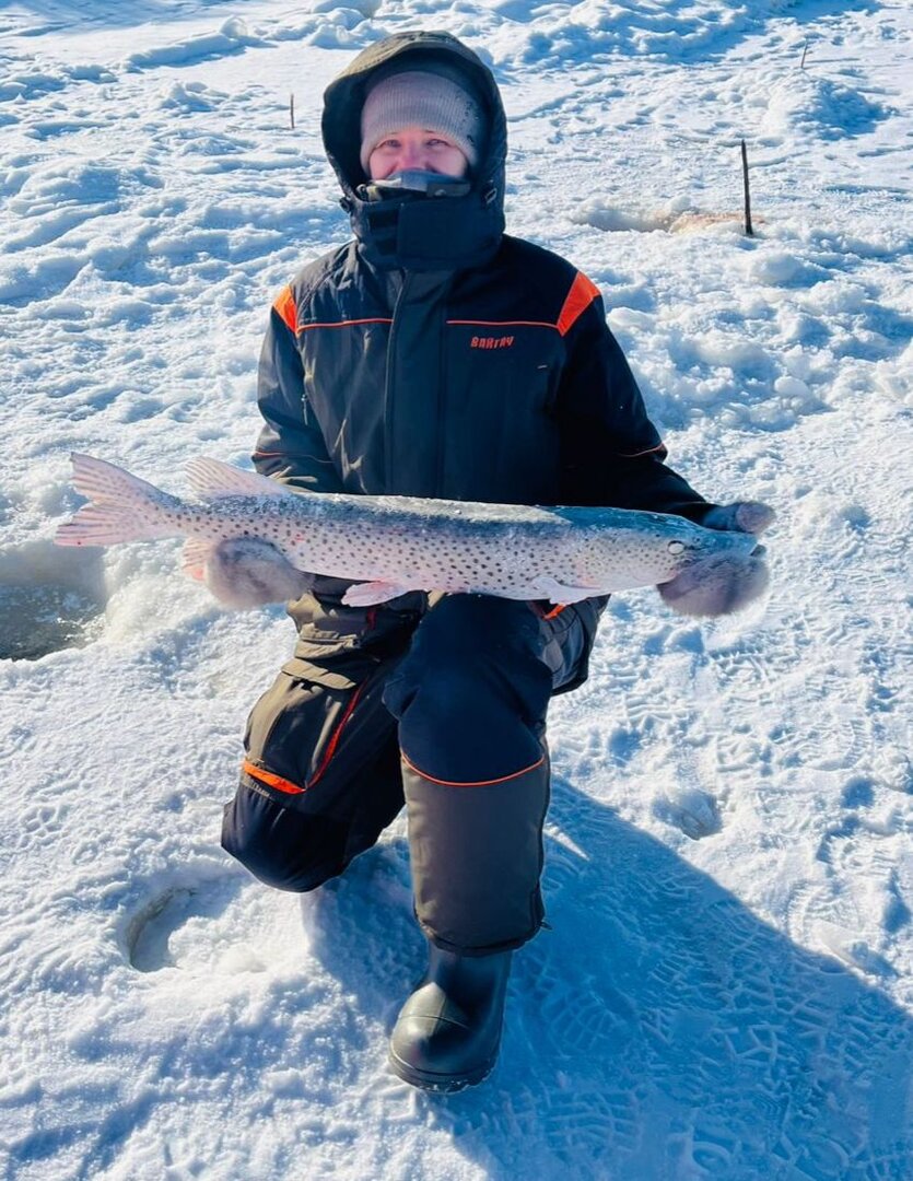 Выезд 29.12.2024 - привыкли к поздним выездам, сели махать только около 11. Минут через 15 случился "выход", сразу сработали лунки мои и жены. У жены "небольшой" подход и "хороший" сход. У меня, первая в жизни потеря приманки из за того, что эта лошадь разогнула карабин и ускакала с моей "Плотвой". Звонок на магазин, последний раттлин в наличии, сразу забираем.