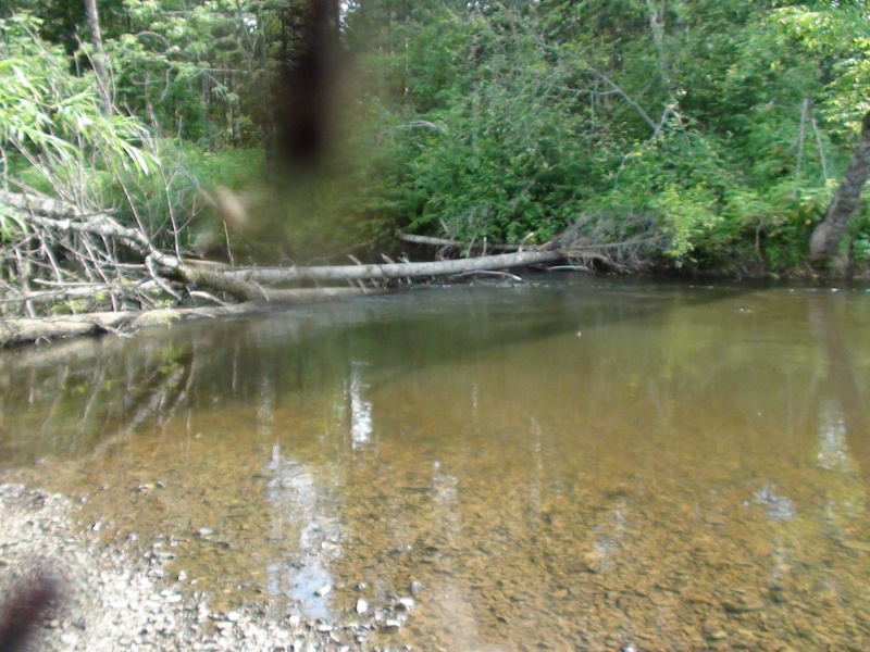 Быстро переодевшись в болотники,я спустился к речке. Первоначально пошел по проточке,которая идет параллельно р.Кенжа,где собирался половить хариуса,но подвело русское авось.Чтобы облегчить вес,взял снегоболотники, т.к .более легкие ,но увы проточку промыло и сапоги ,как более короткие стали проблемой.Помыкавшись и оторвав одну блесну и мушку решил идти на р.Кенжу.