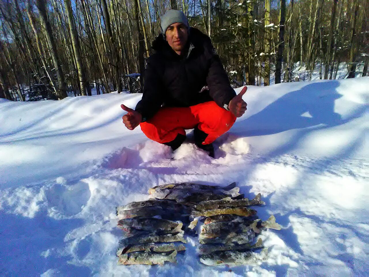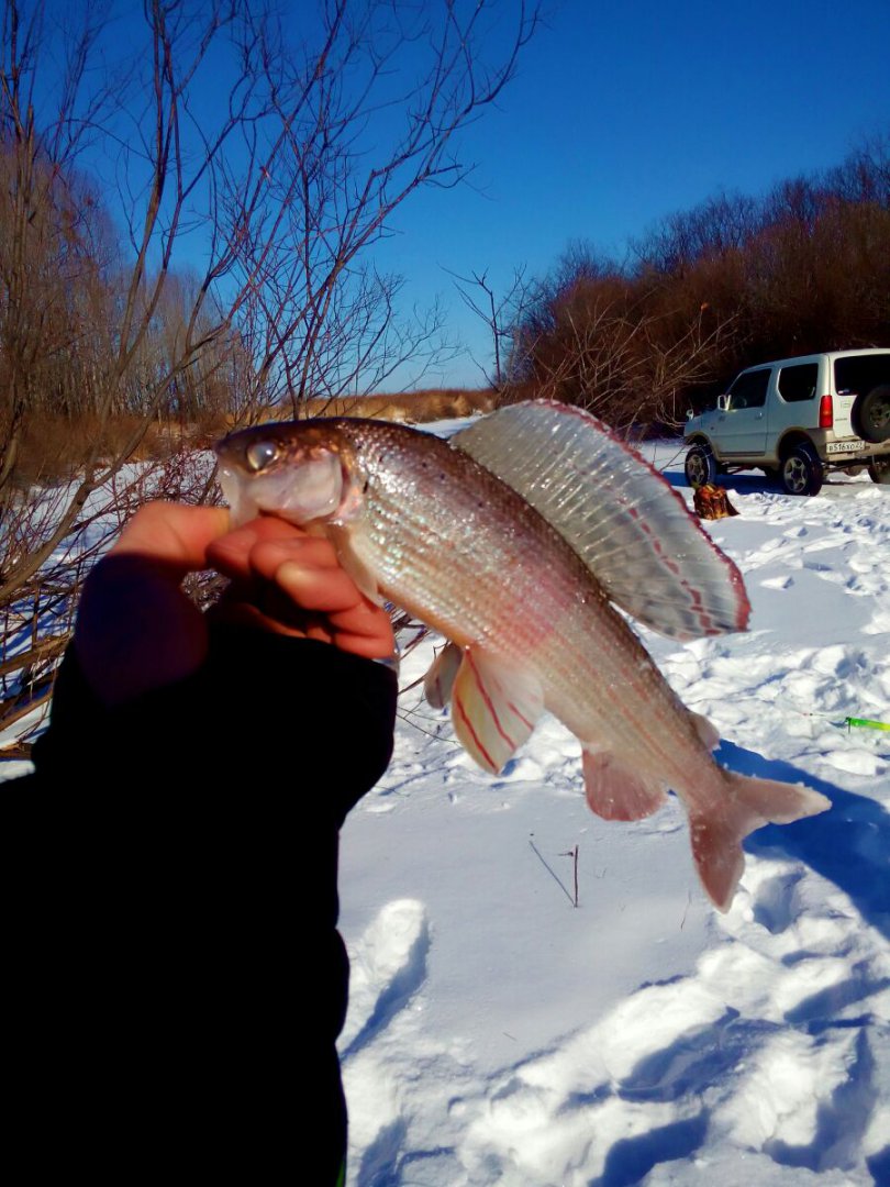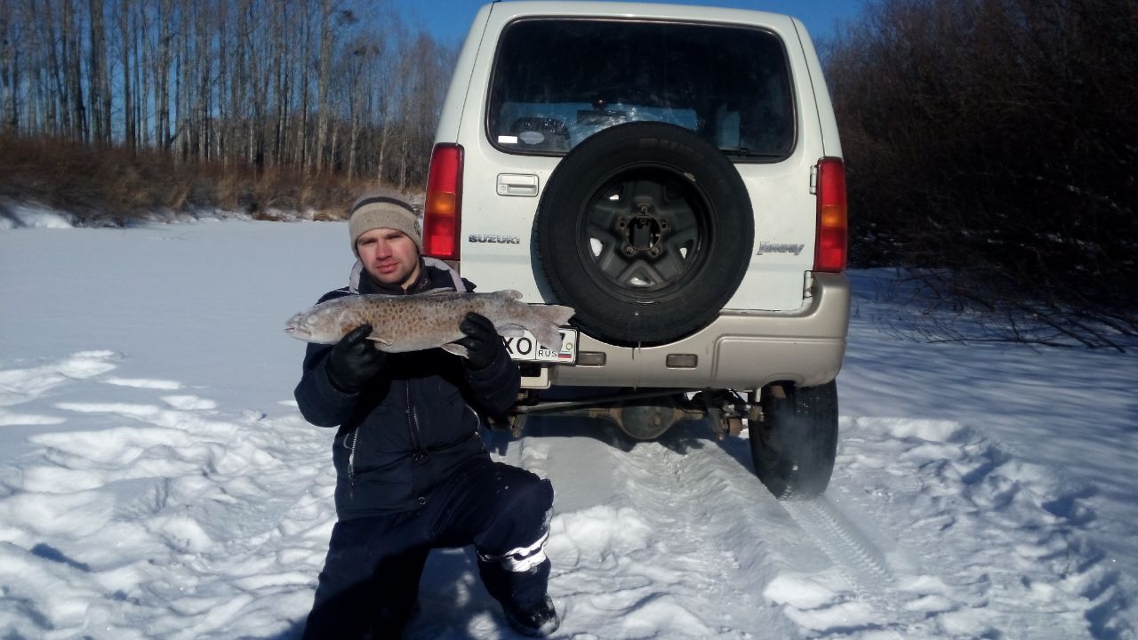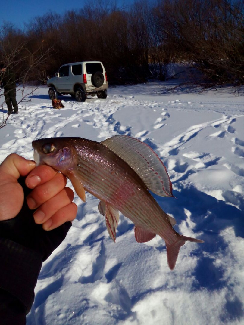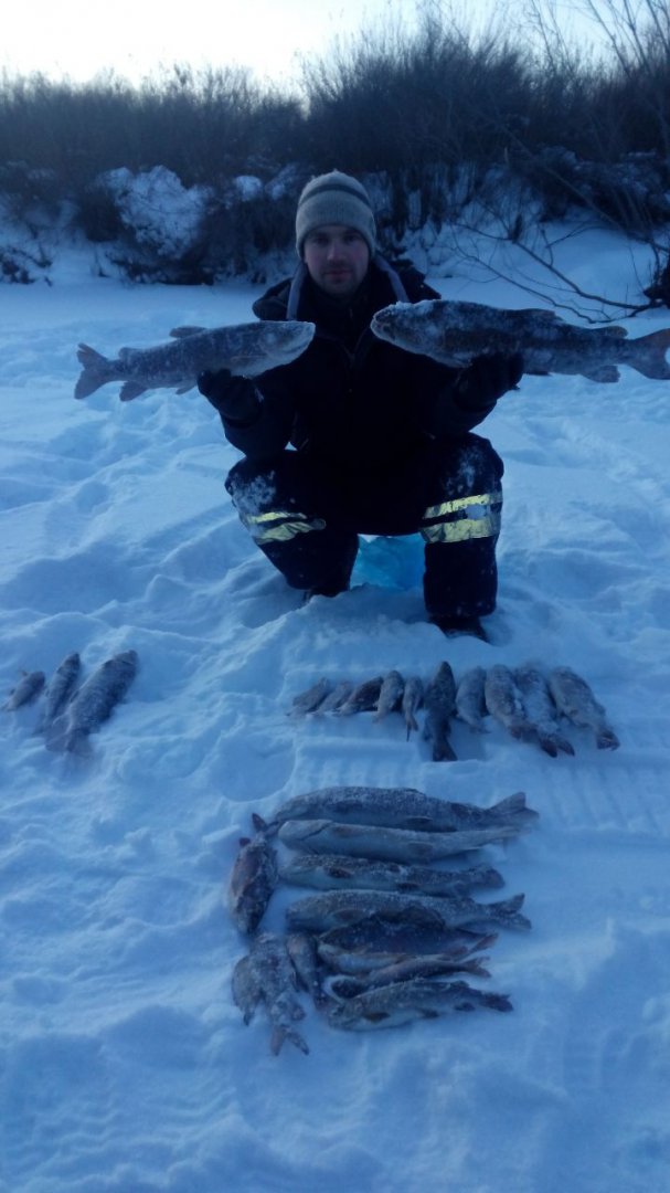 Достойный экземпляр, Артур! Молодца!В Прошедшие выходные удалось побывать на речке, хотя и передавали жесткий минус, все равно решили ехать. И Вправду, в тайге темпер был далеко за 40, стоял жуткий треск деревьев, лунка замерзала в считанные минуты. До 10 утра сидеть на месте было не возможно, по этому после каждого пойманного ленка все по очереди отправлялись греться в машину, которую не глушили вообще )) Ближе к обеду потеплело, и стало очень комфортно. Рыба ловилась с переменным успехом. У Товарища, по его словам, нечто огромное и сильное придавило сапожок ко дну, украло короеда и уплыло. Мне удалось выхватить трофей дня. С Собой взял весы с севшими батареями, поэтому завешали на маяке в магазине. Итог 2430. Хариус клевал часто, но брался очень вяло. 80% рыбы было поймано на икру, на короеда очень вяло. Заметил закономерность, чем длиннее поводок, тем больше поклевок.