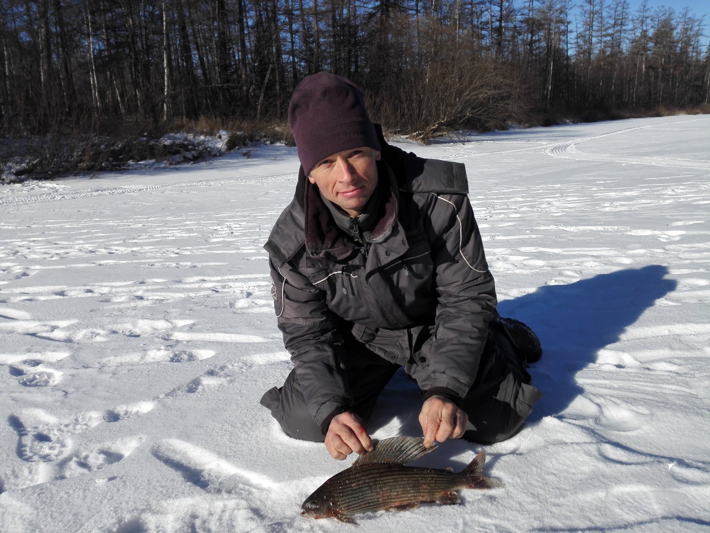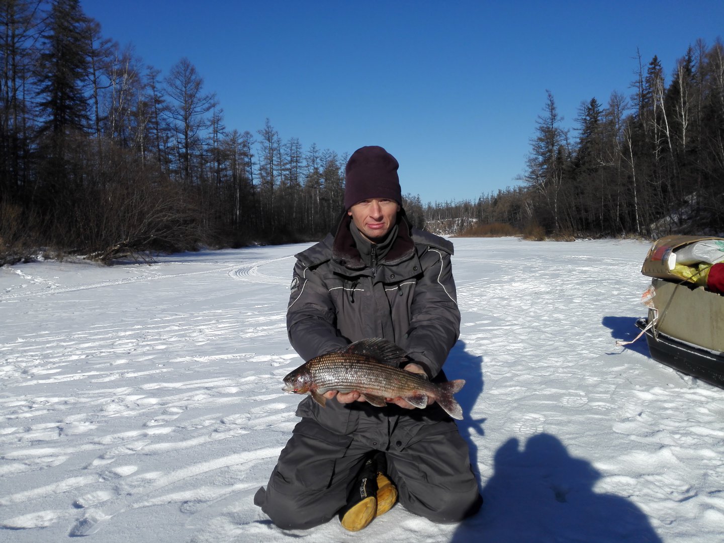 Э-эх глухозимье. Хариус 40 см, 970 грамм .На зимнюю удочку.Поймался на обманку жёлтенькую.