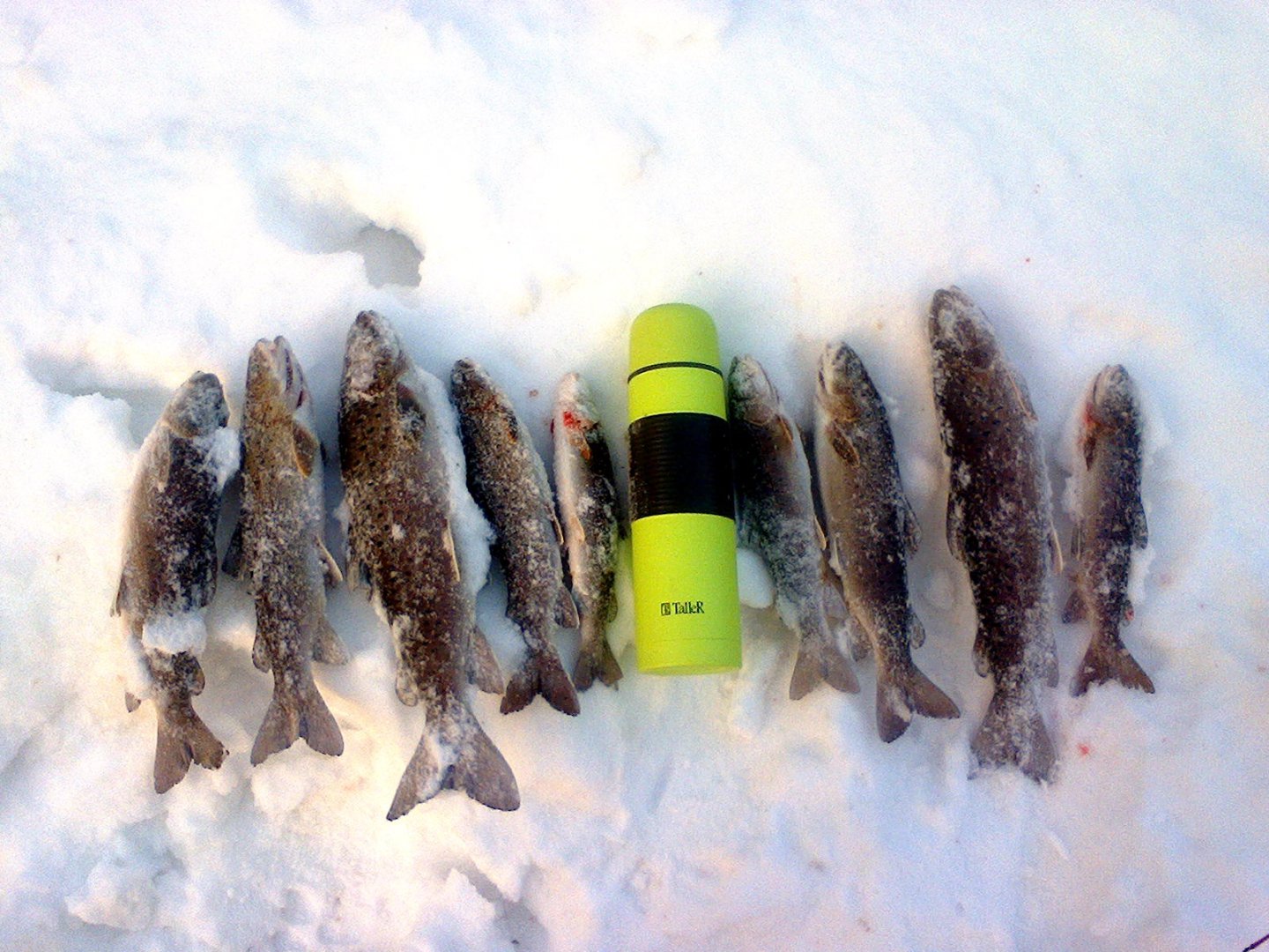 И судя по пятнам вокруг лунки, чем то прикармлмвали????