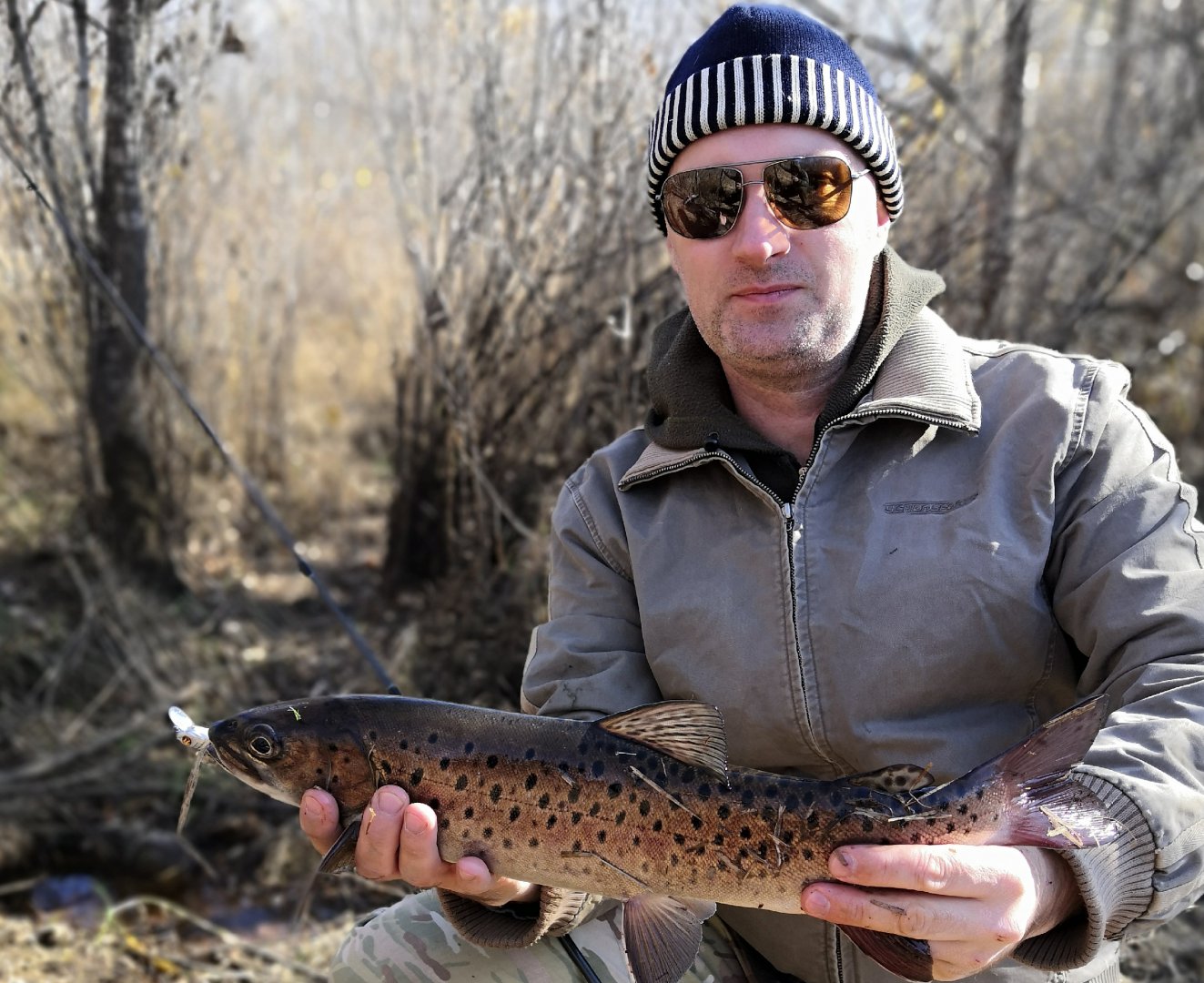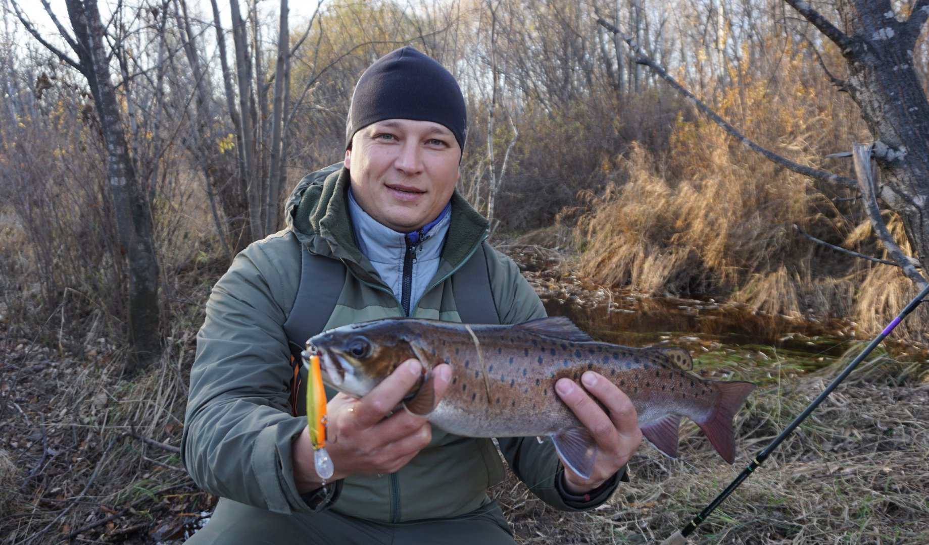 Блин, оказывается, что всё-таки воблер ловчий. Буквально через десять минут товарищу попался ленок и неплохой, около двушки.