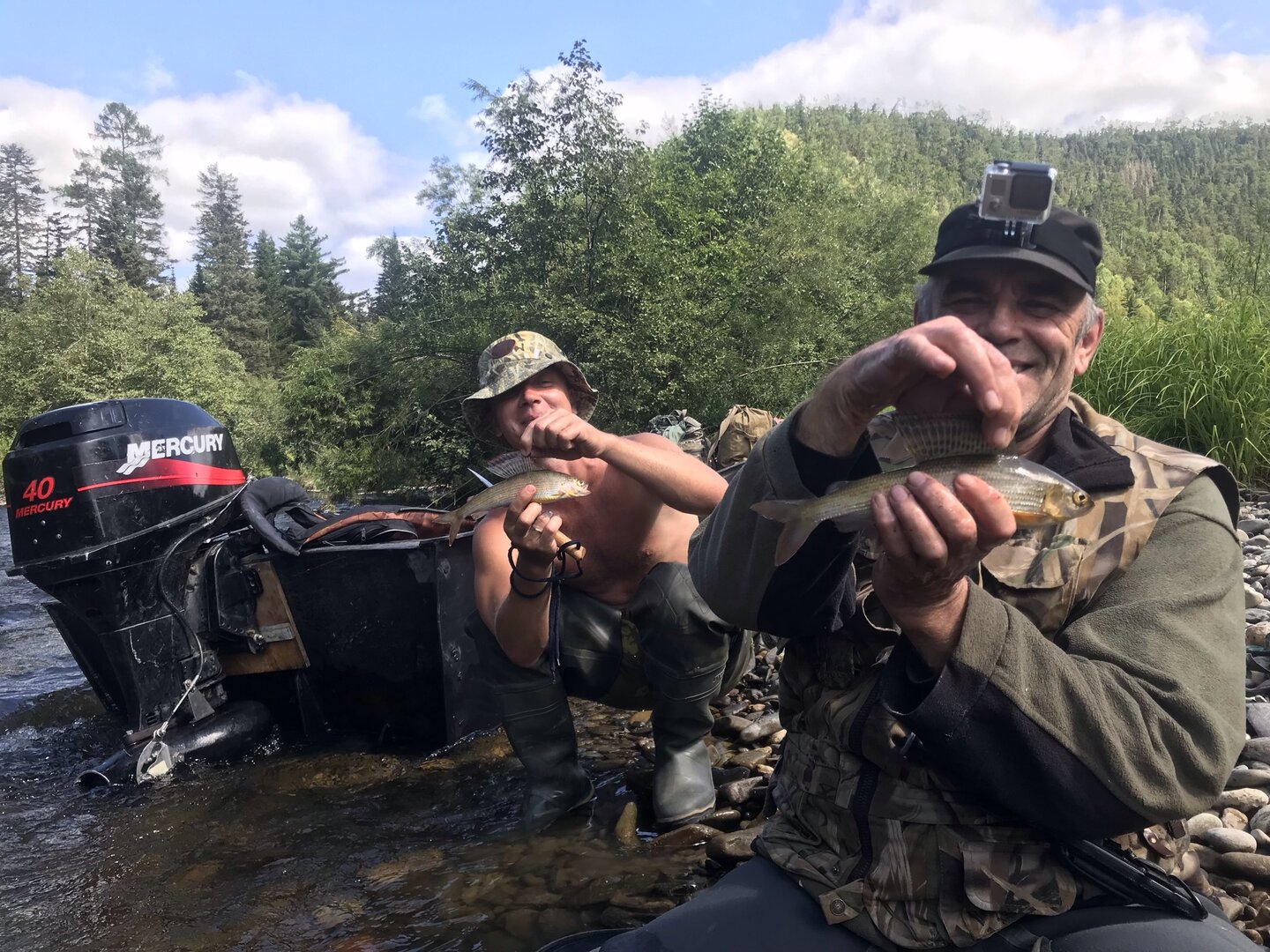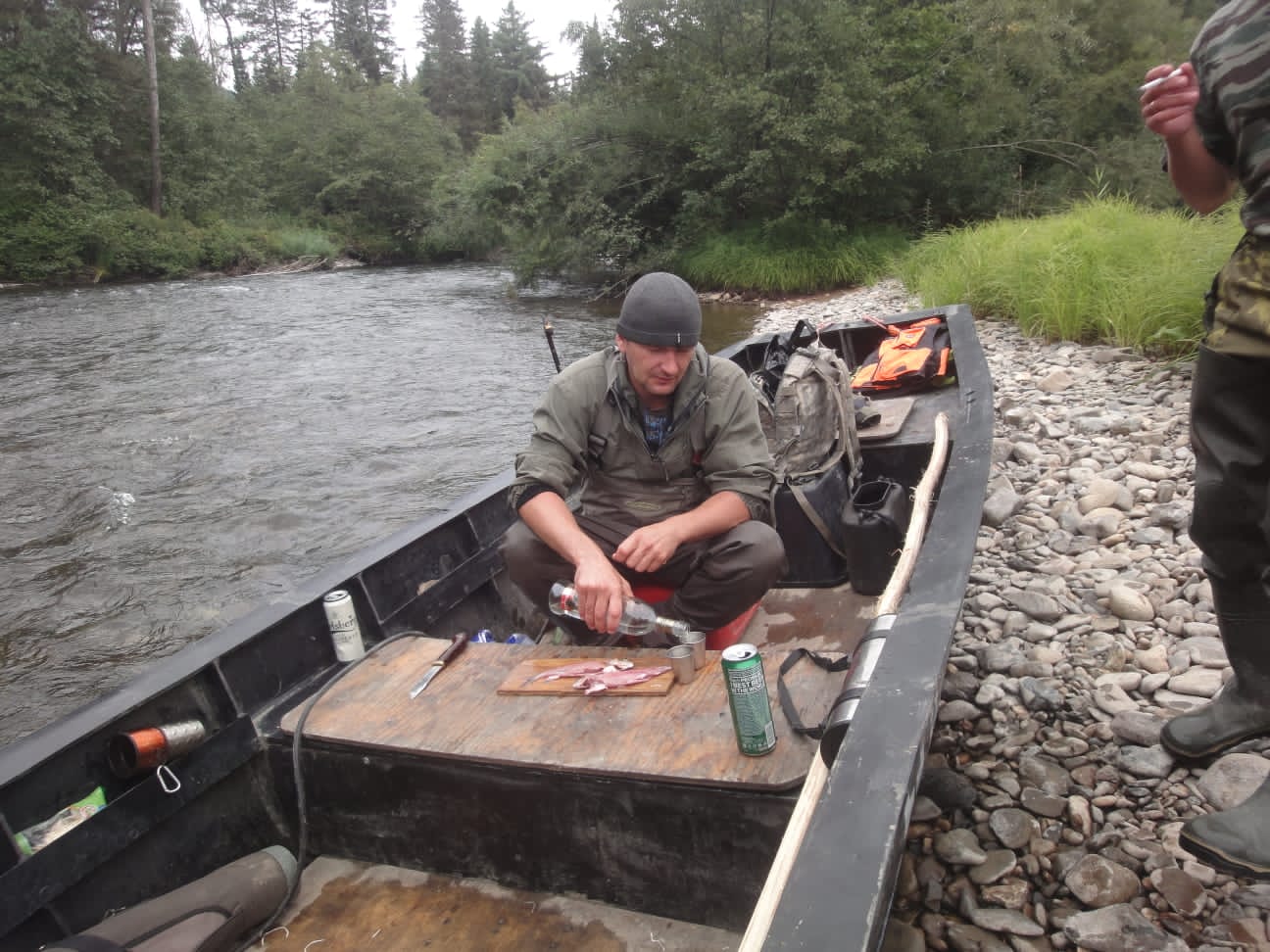 Вкусная уха на вечер нам была обеспечена, но Александр в течение дня упомянул о жареной рыбке на ужин, и эта мысль поселилась в наших головах. А если и жарить рыбку, то только хариуса. Удовлетворив спиннинговый азарт, мы решили под вечер половить харюзка. Нашли подходящее место и…
