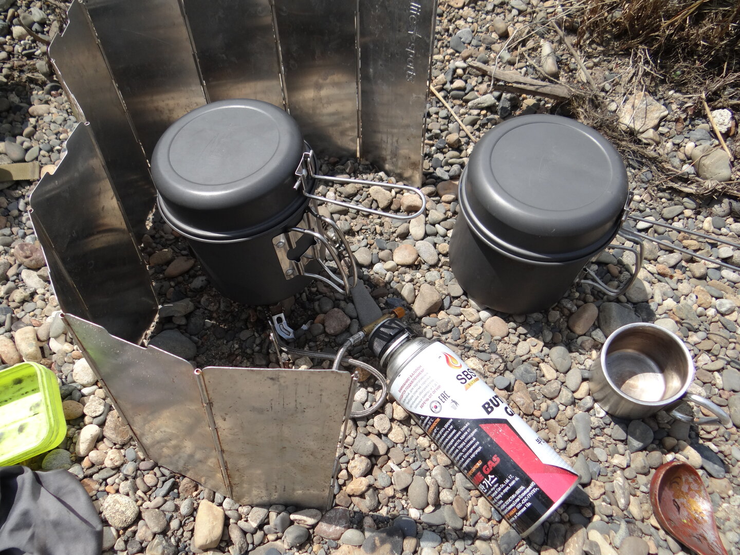 Мне товарищ подарил походный комплект для рыбалки, который я использовал в этот раз, это два котелка и две миски, которые можно использовать как сковородки. Попробовал и мне вполне понравилось.