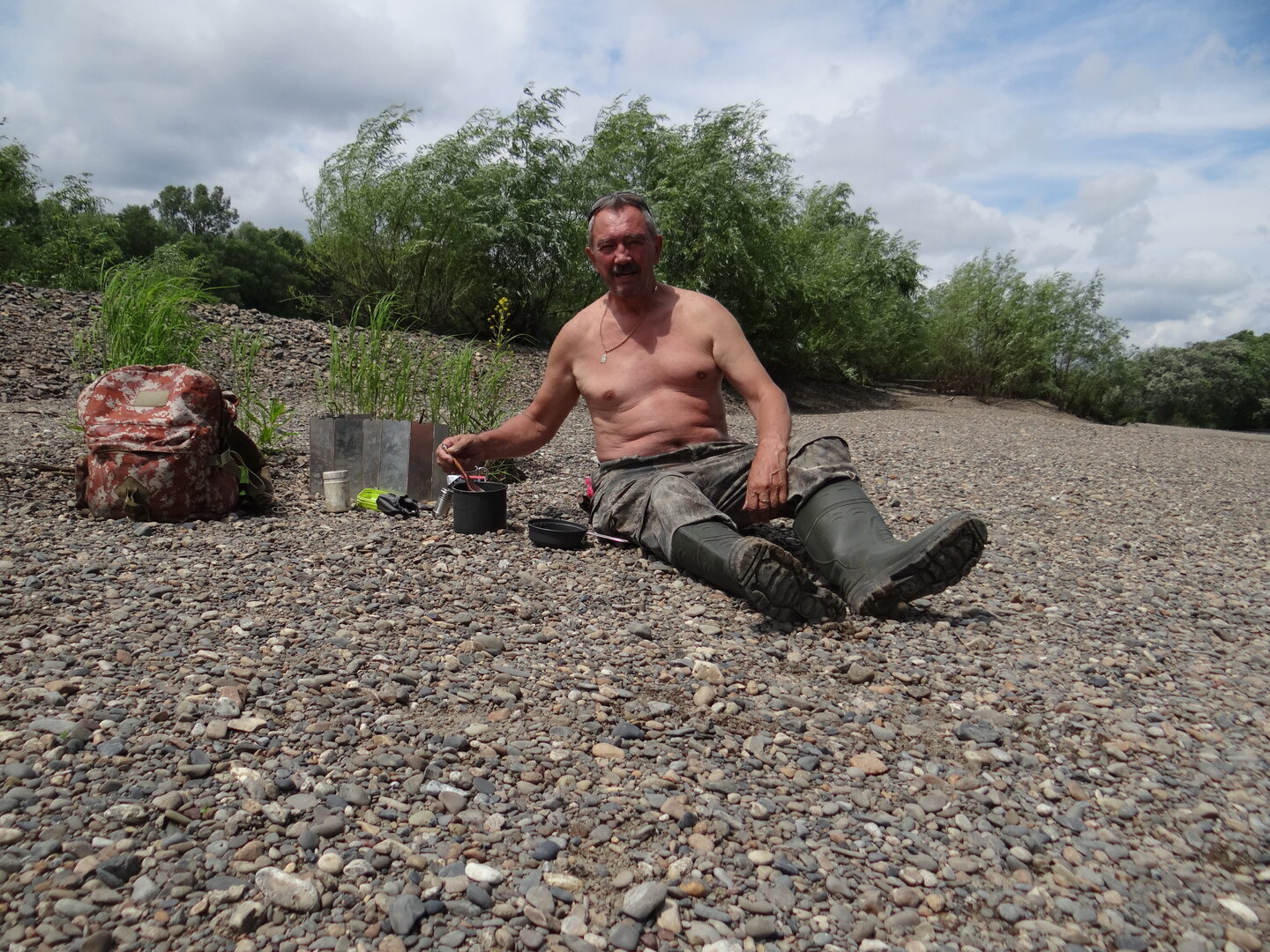 Дело двигалось к обеду, и на очередной проводке попался небольшой леночек, которого было решено скушать на обед. С собой были только специи и вода, которая плескалась в реке. Я сварил вкусную юшечку, в которой ленок отварился и был очень приятен на вкус.