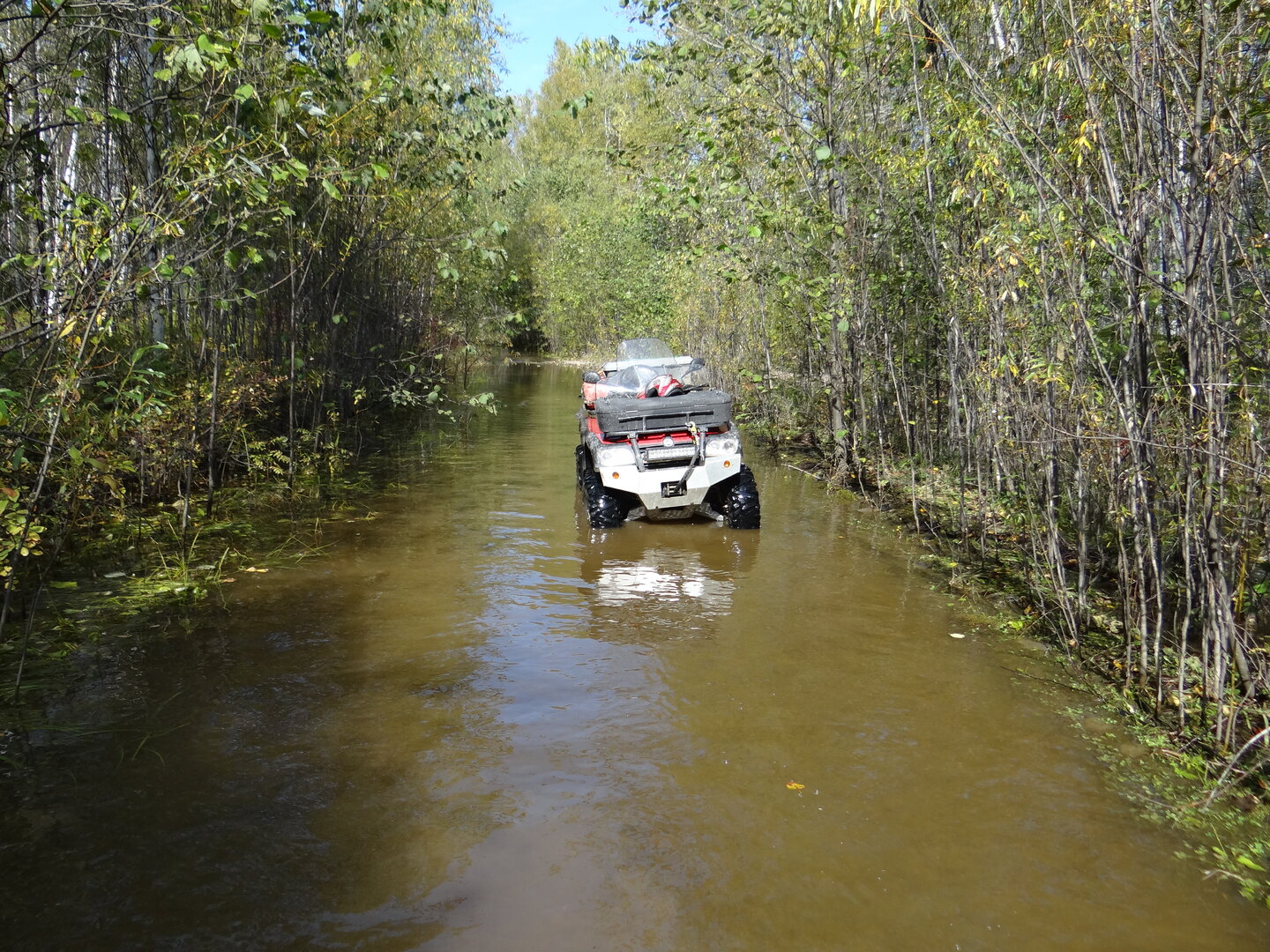 После прошедшей полосы непогоды не верилось изначально, что обстановка на реках стала в норме, но сидеть дома не было никаких сил, поэтому заправив квадроцикл, поехал на горную реку, сначала на одну, а затем на другую. То что я увидел в лесу , меня просто поразило, столько воды, я не видел давно, вода была везде, она по лесу текла, сливаясь в ручьи, а затем текла по дорогам, образуя их в реки. Те места, которые ранее проезжались без проблем, сейчас становились непроезжабельными. А вблизи рек, где вода немного отошла, торчит почерневшая трава. Впечатление еще то.