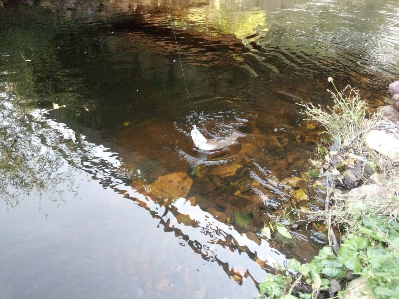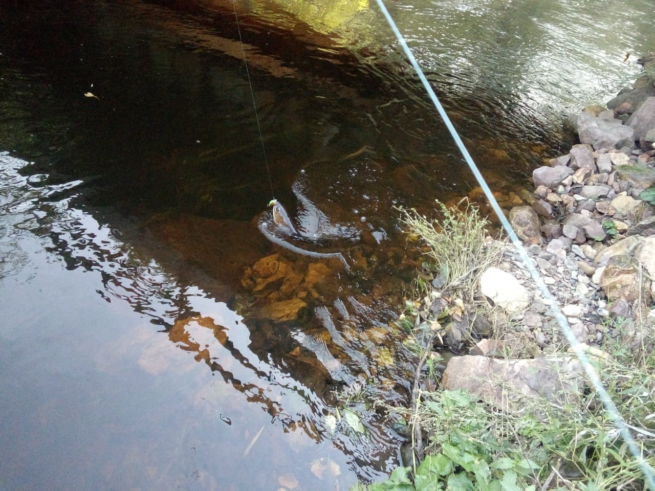 На выходные прокатились. После субботнего дождя водичка поднялась,но на жарёху поймали. На реке хорошо,красиво.