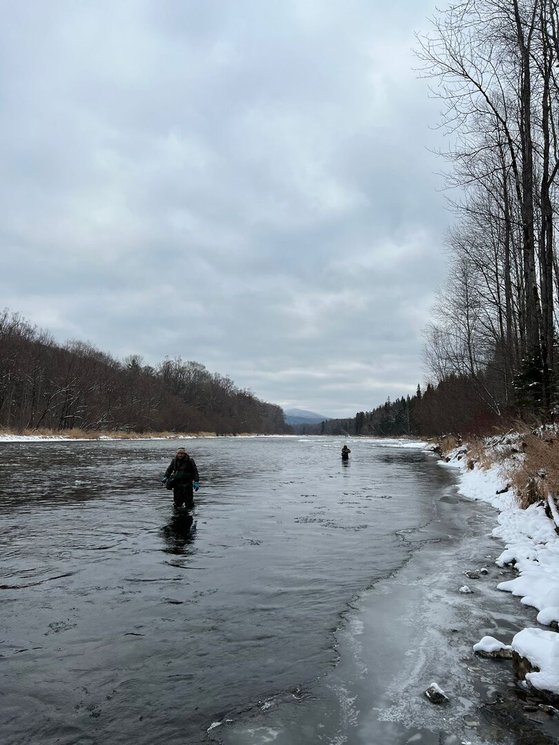 Что касается рыбалки, то она была, пусть даже не такой активной как хотелось, но, наверное, это связано с понижением давления перед снегом, но в целом ловилась и ленки нападали на наших мушек и хариуса мелкого не было вообще, единственное, пришлось уйти с основного русла на проточки, где не было практически шуги и по чистой воде ловится было удобней.