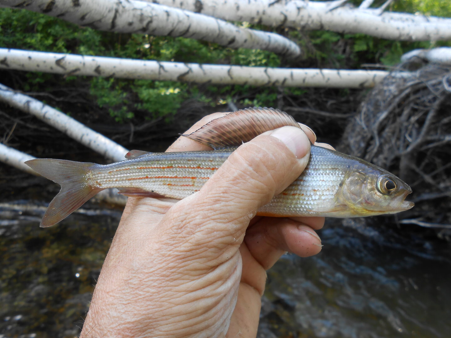 Мысль что хватит нам уже кошмарить ленков, пора и хариусам заявить о себе. Перемещаемся в один из небольших притоков, кругом свежая зелень, шум реки….. Под эти приятные слуху звуки быстрый перебор мух. Вот и результат.