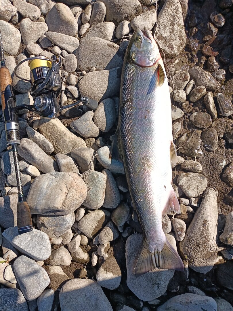 На выходных ездили на катэн. В субботу день был хороший. Вода чистая, уровень средний. В основном русле речки рыбы практические не было (за исключение 4 харюзей) или не хотело ловиться. Попытались ловили в протоках. Километры намотали, что вечером ноги гудели и костюм продырявил (две дырки). В протоках наблюдали хариуса и ленка ( с мелководья или из под коряжины выскакивали), но приманку игнорировали. Поймали немного все таки на уху и на небольшую зажарку. Работала муха зеленая иногда червяк. Обратил внимание, когда чистил рыбу в желудке много гусеницы шелкопряда. Подошел к деревьям и обомлел все усеяно в гусеницах. Столько я еще не видал в таком количестве.