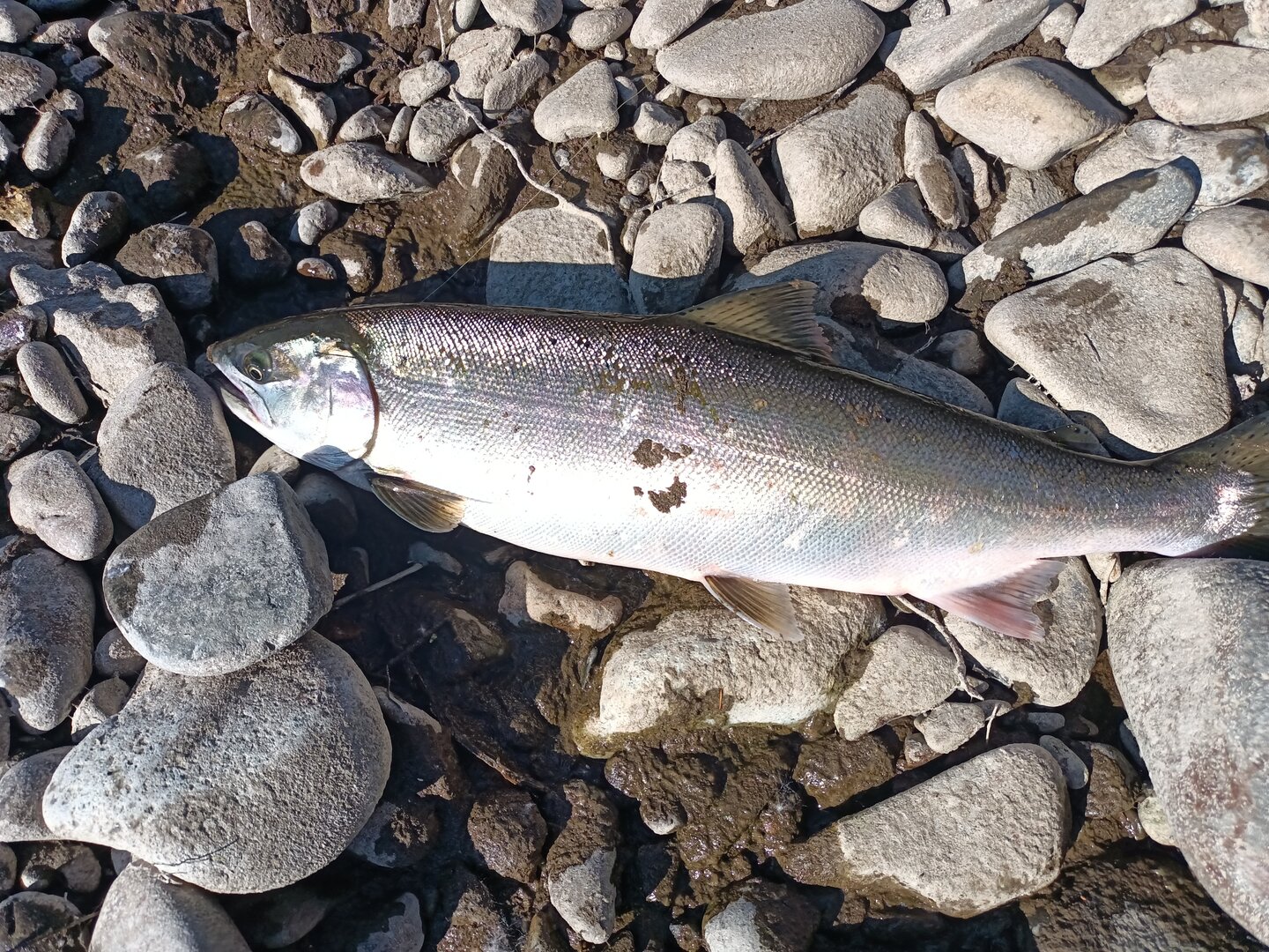 К вечеру второго дня начали выбираться в места, где река становится более широкой, немного успокаивается. Начинают появляться более крупные плесики. На них вечером на удочку стал активно брать хариус уже по классической осенней схеме - помутил, поймал. Так же подтягиваться и ленки стали.