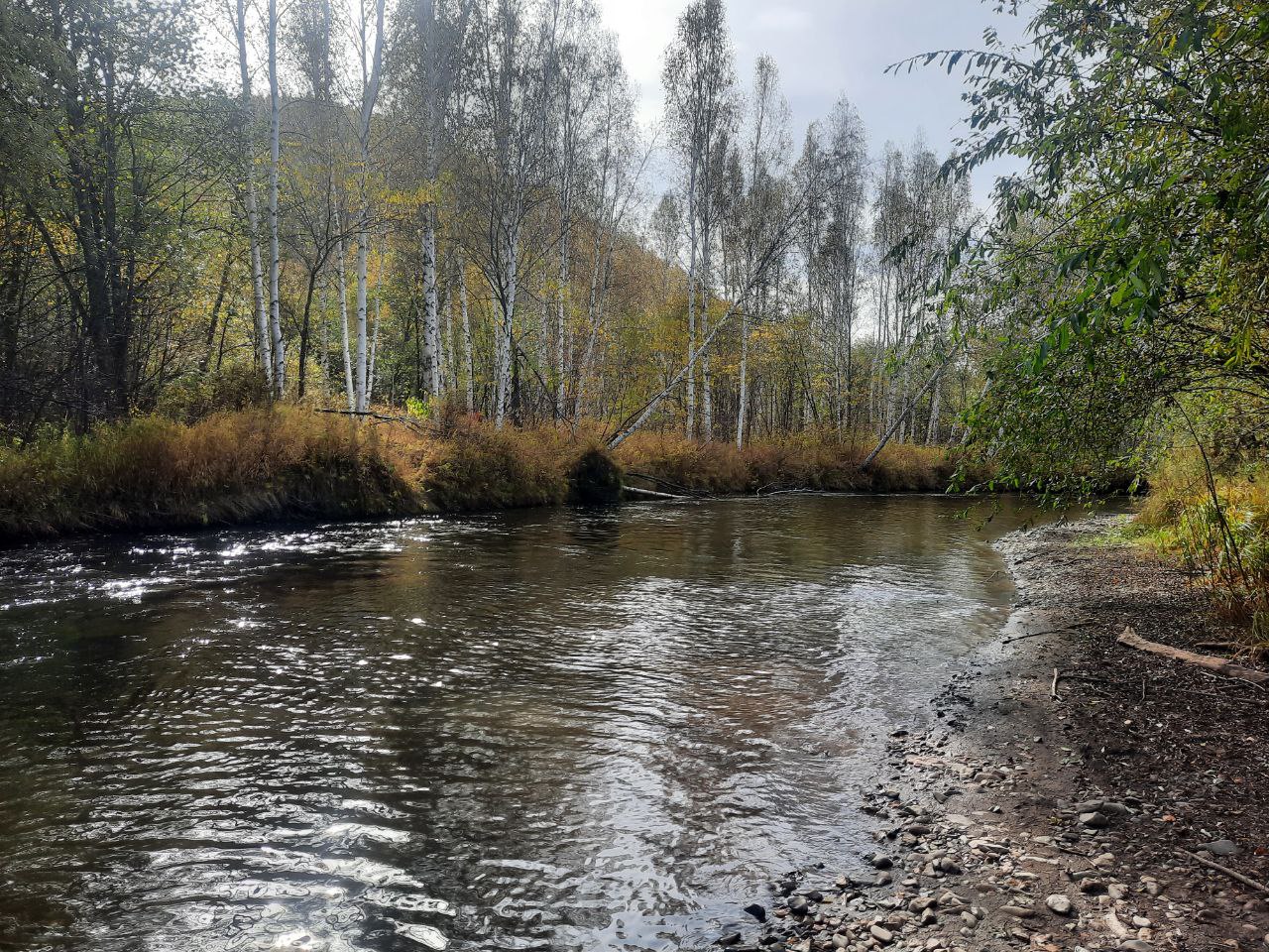 В первый день октября, а это, напомню, было воскресенье, у меня не было никаких планов насчет рыбалки. Намечались кое-какие дела, но к полудню они были завершены, и оставшееся время хотелось бы провести с пользой для души и тела, а конкретно - на рыбалке! Долго не раздумывал - забросил в машину байдарку, спиннинг, коробочку с блеснами и выехал за город. Через 10 минут я был на берегу таёжной речки, в окружении полыхающих золотом лиственниц.