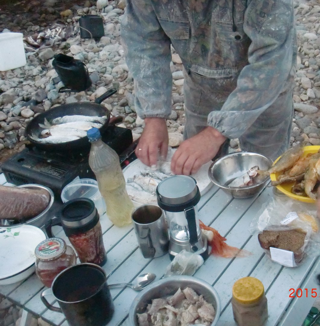 шарахались мы почти весь день, поймали десятка два зачетных хариусов, решено было перекурить и сварганить ушицы
