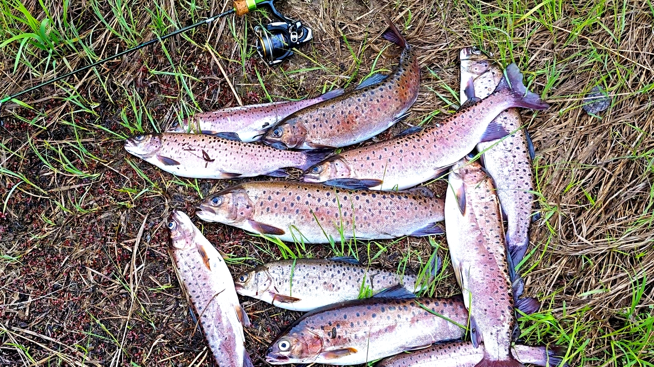 За четыре часа неспешно прошел примерно с километр вдоль речки, выдернул два десятка пятнистых «пучеглазиков», ленок в основном был мерным, весом 500-800 грамм, самый крупный потянул на 1,1кг. Часть улова была отпущена, я не жадный)). Другой рыбы не было, как и предполагал, еще рано. Вот так и открыл я свой сезон увлекательной рыбалки на горных речках. Всем НХЧ!
