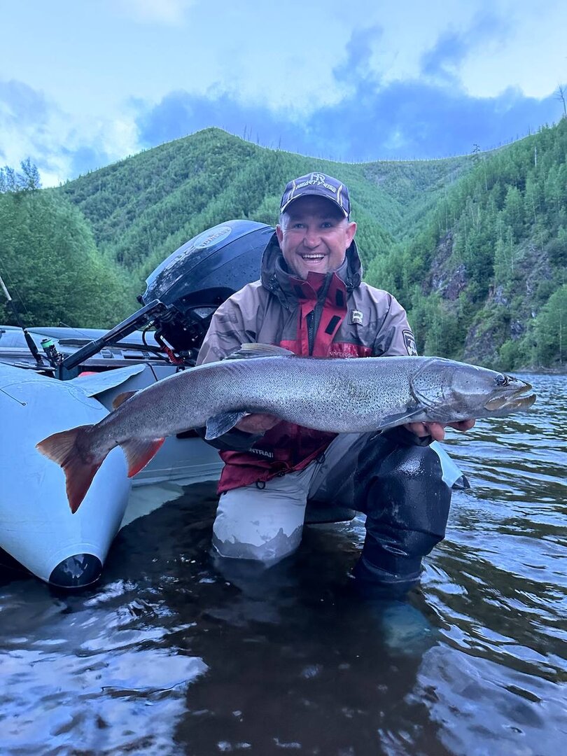 В основном ездят вверха за тайменем. Есть хариус 600-800 гр.