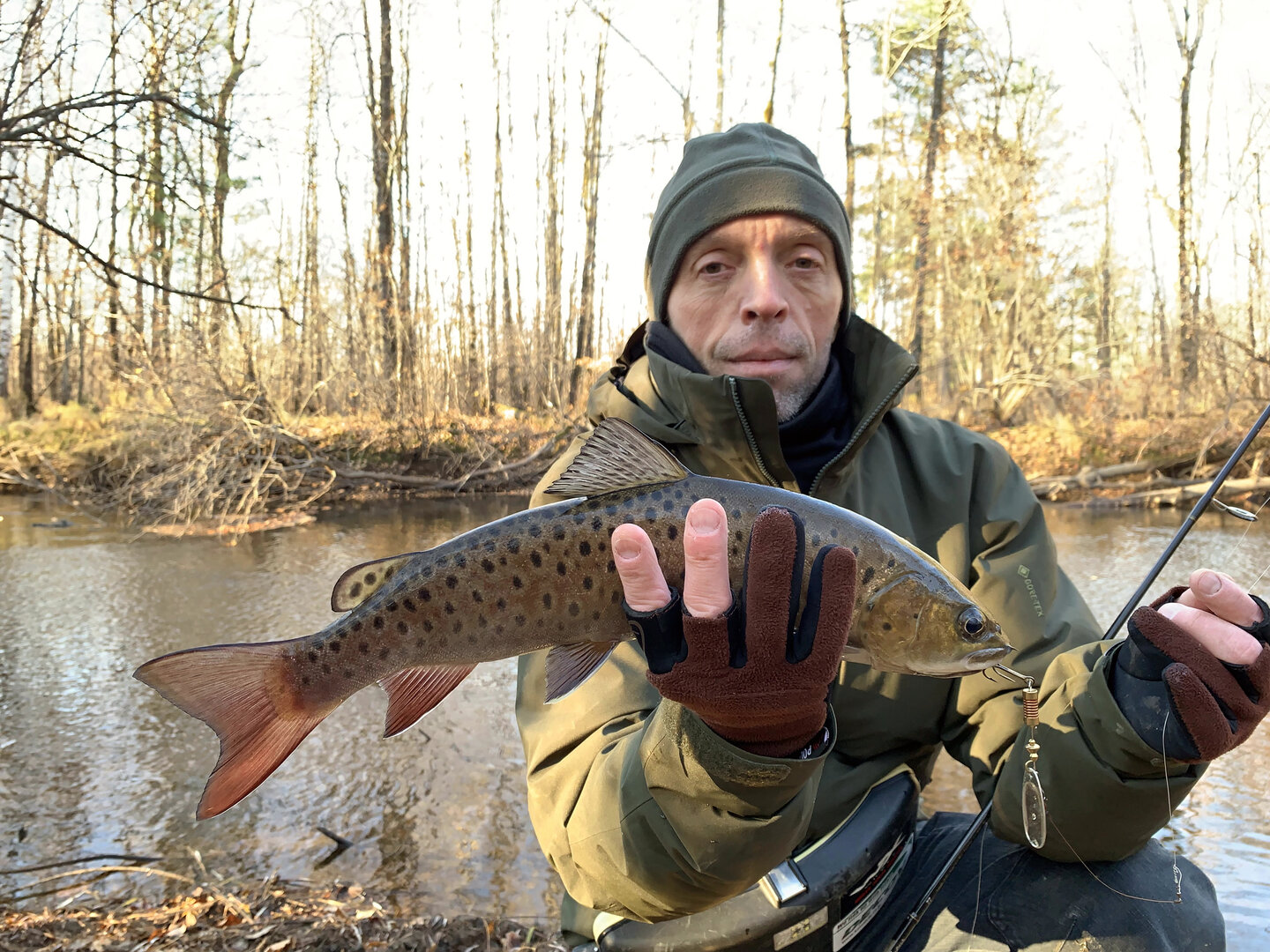Закрытие сезона жидкой воды прошли отлично! не смотря на то что из 4 дней рыбалки рыбачили только один. Остальное время было потрачено на борьбу со стихией ( дождь, снег, встречный порывистый ветер), сломанный винт (как же тяжело на веслах идет груженая лодка вниз однако). Вода низкая, прозрачная. хариус ловился хороший и в избытке, с ленком было по сложнее, но присутствовал и радовал иногда поклевками на мушку, блесна, воблеры и на мышь. Задача была поймать ровно по кану рыбы и мы за день с ней в принципе и справились)) Сезон закрыт!