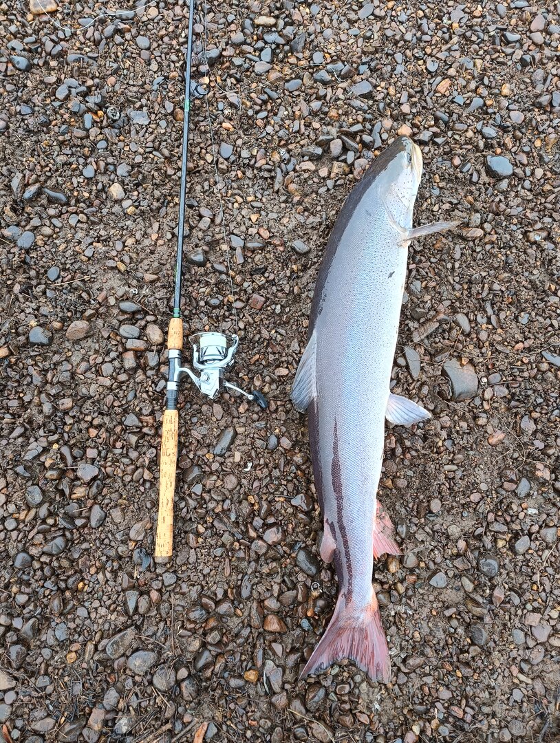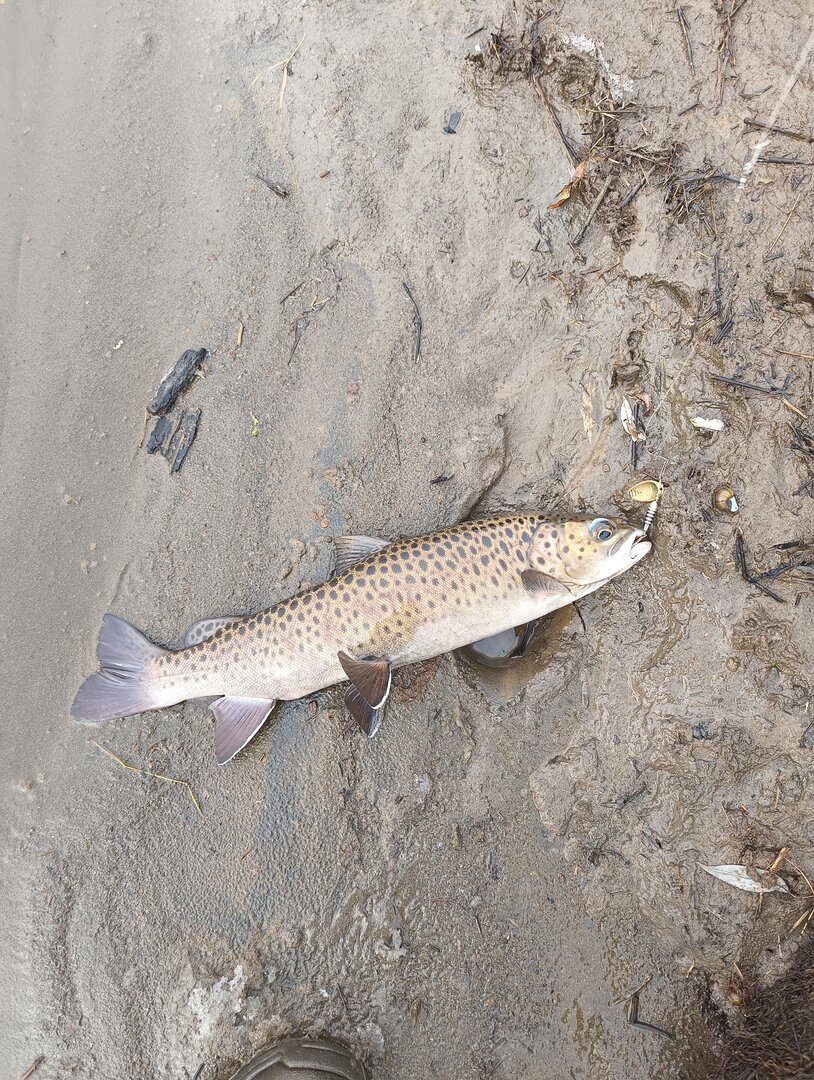 После фото рыба была отпущена. И спасибо тем кто ее отпустил до меня(на жировом плавнике имелась маленькая зарубка).