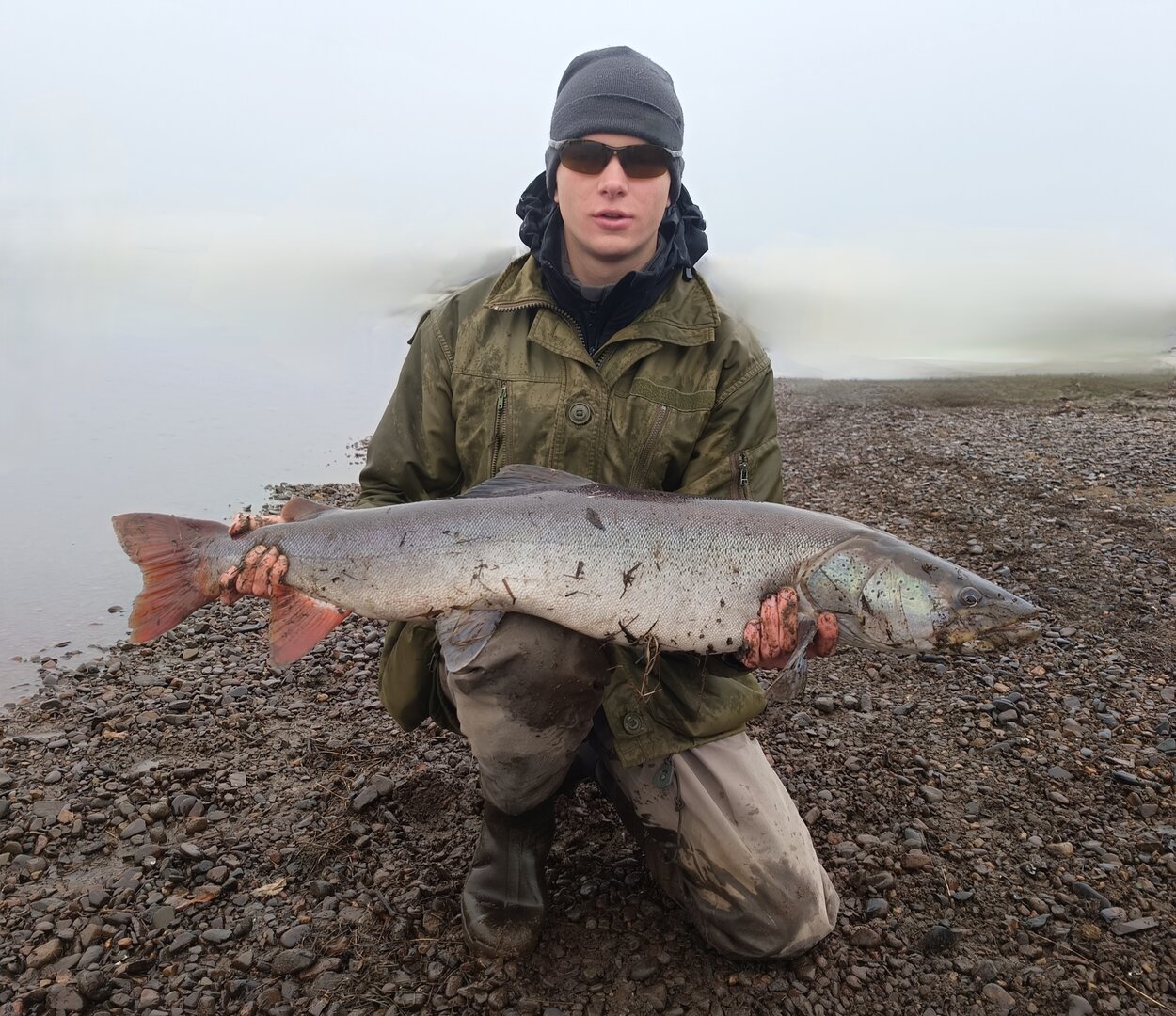 Анюй. Воды мало. Рыба есть. В пн-вторник погода была отлична, хоть и холодно. Сэм Санин хорошо согревал😀В среду весь день шел дождь- было уныло, в четверг начался снег.