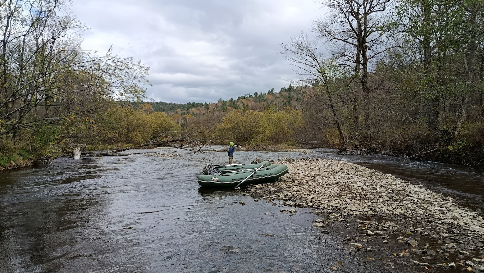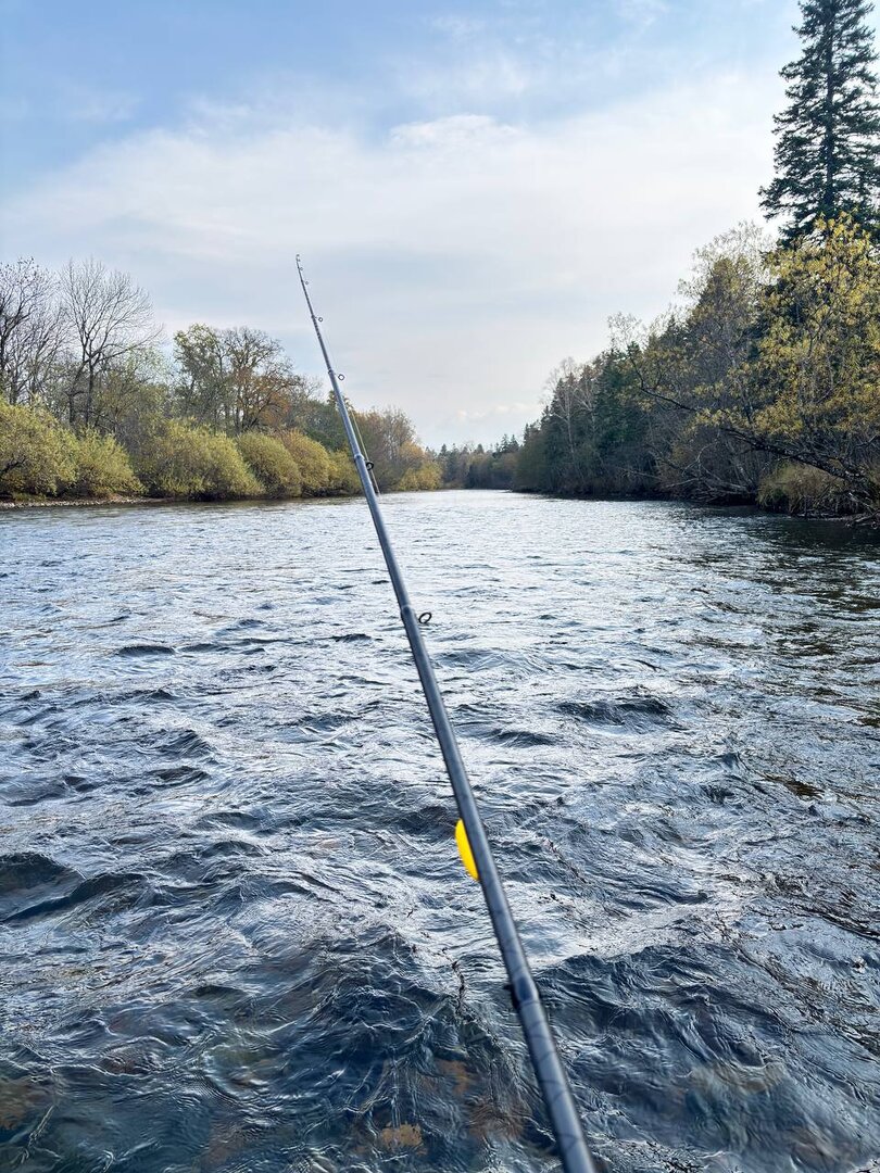 Хорошо осенью на реке, берега раскрашены разными красками, лес готовится к холоду , укрывая землю листовым одеялом. Лист ,конечно, мешал рыбалке, но не критично, воблер собирал листву лучше всех и по этому на них рыбачили только , когда не было ветра. Зато мушка под икринку работала и адреналину в кровь добавляло вываживания на удочку речных леопардов.