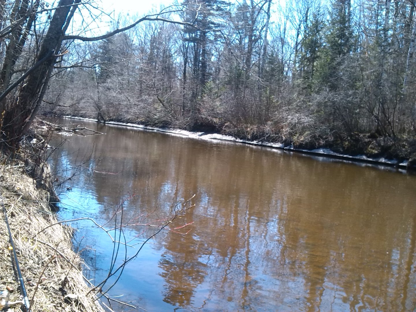 Как стоял в прошлом году наполовину, так и стоит )) Но водичка прибывала и мутнела. Но паводка не будет точно, в лесу таять просто нечему !
