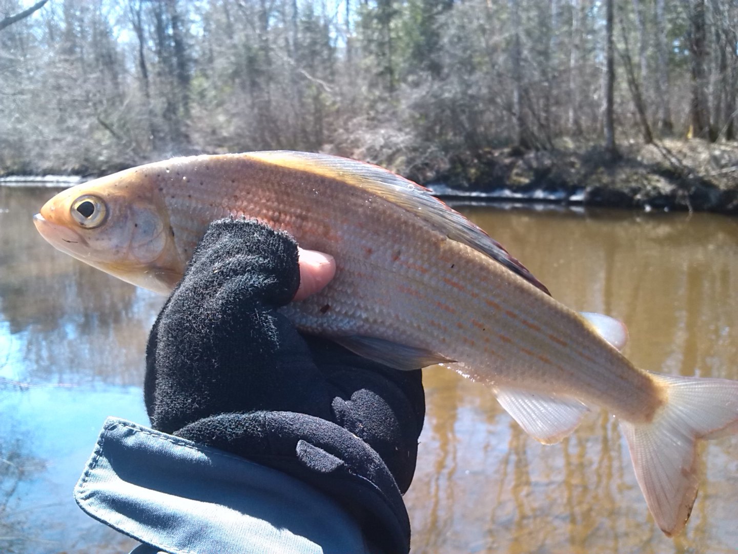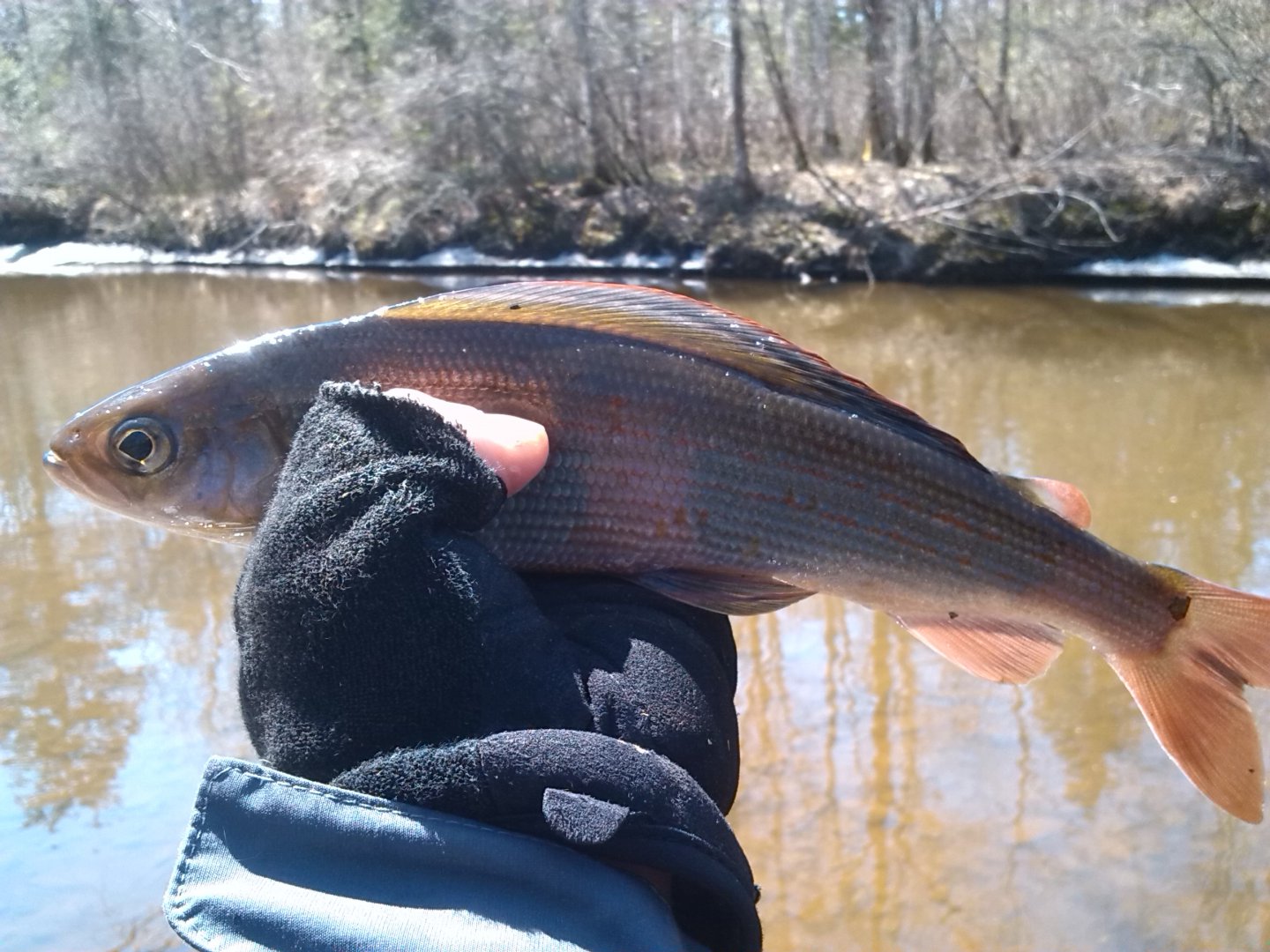 Варвались на рыбалку одного дня, особо рассказывать нечего. Рыба ловится так себе, вода хоть и в русле, ее даже мало, но она мутная, и мутнеет на глазах. Когда уезжали была почти черная. На двоих пяток ленков и десяток хариусов. Далеко не ходили. С погодой очень повезло. Целью скорее был тест драйв :) Все прошел на заднем приводе.