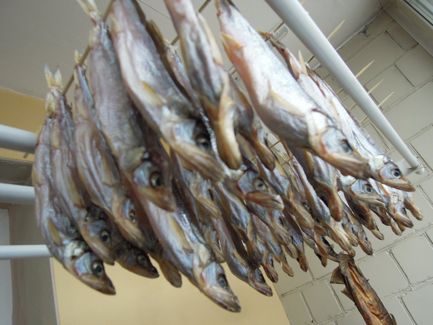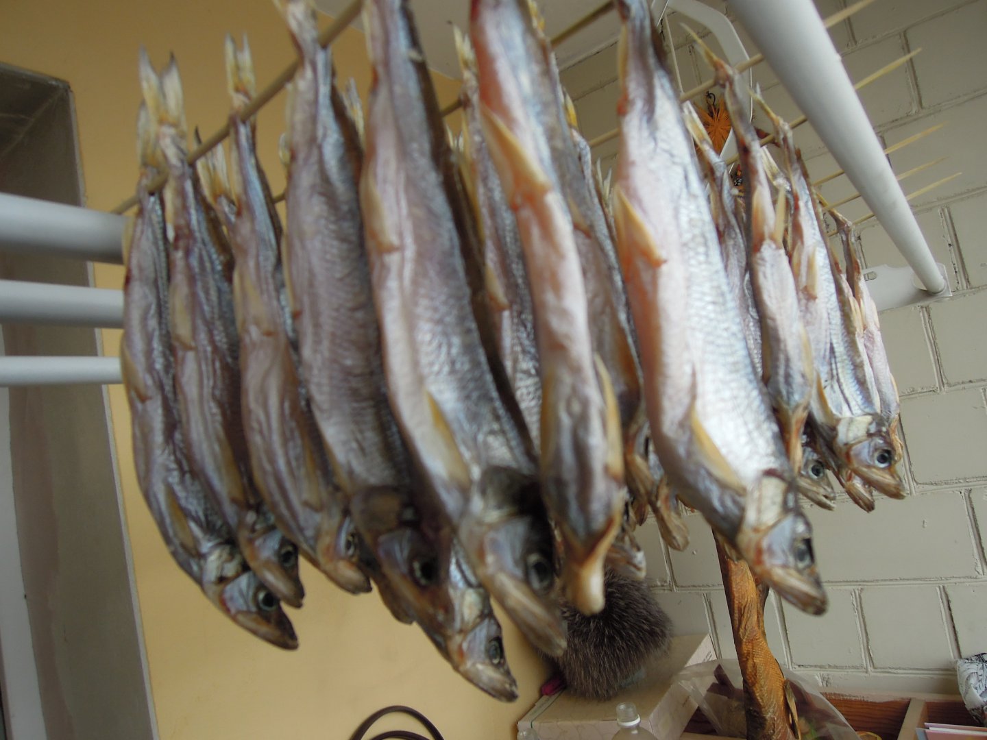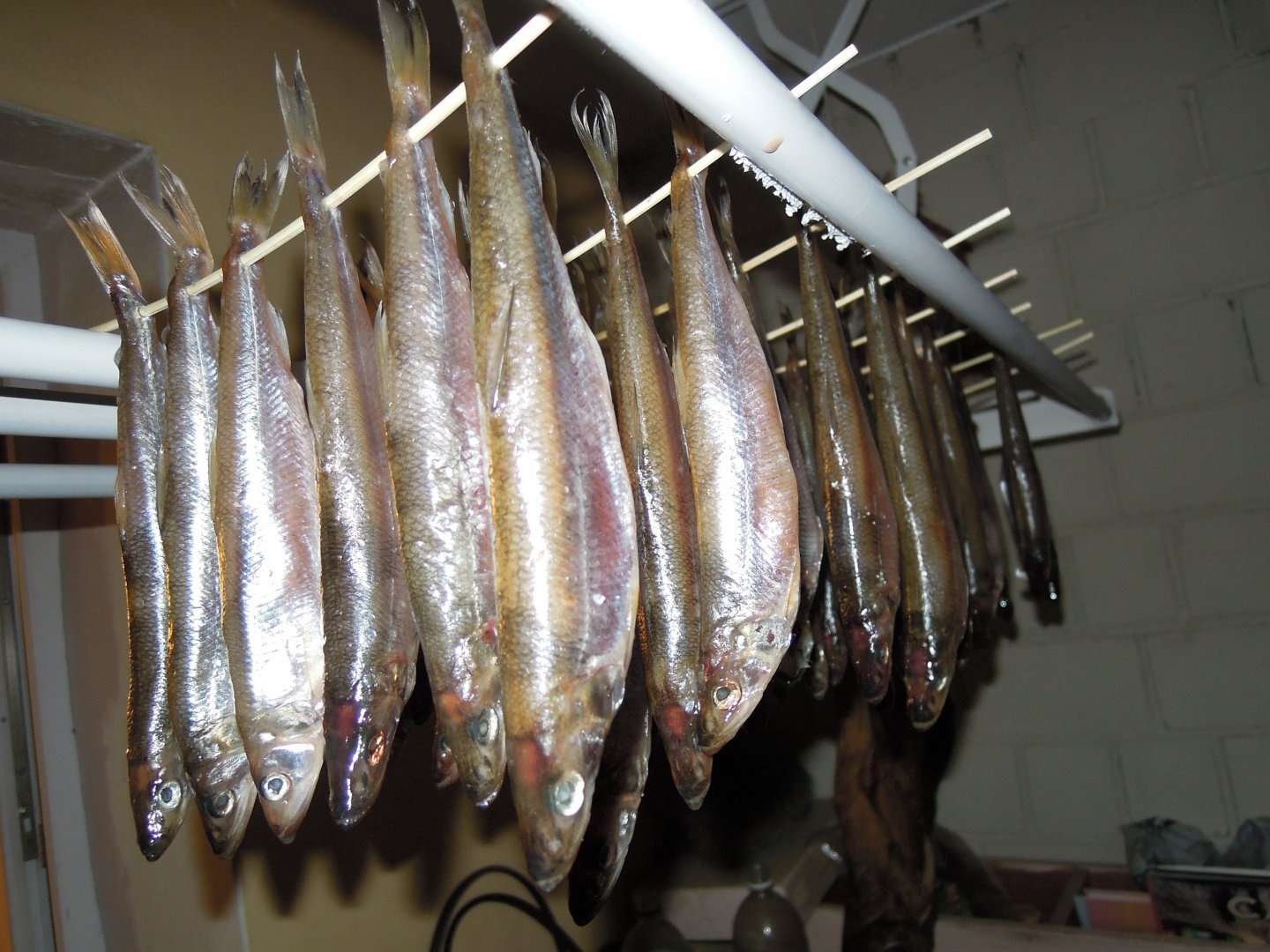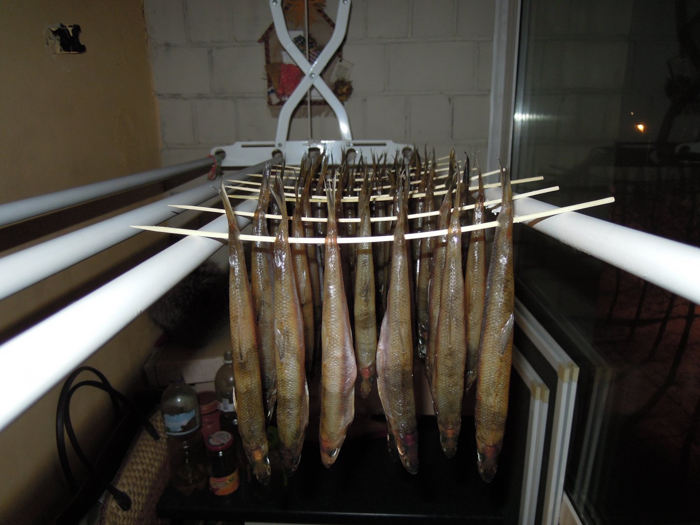 2. Вяление. Промываю, и на шампуры бамбуковые, как Жека Маузэр. Головой вниз. Посмотреть вложение 111163 Посмотреть вложение 111164 Посмотреть вложение 111165 Посмотреть вложение 111166
