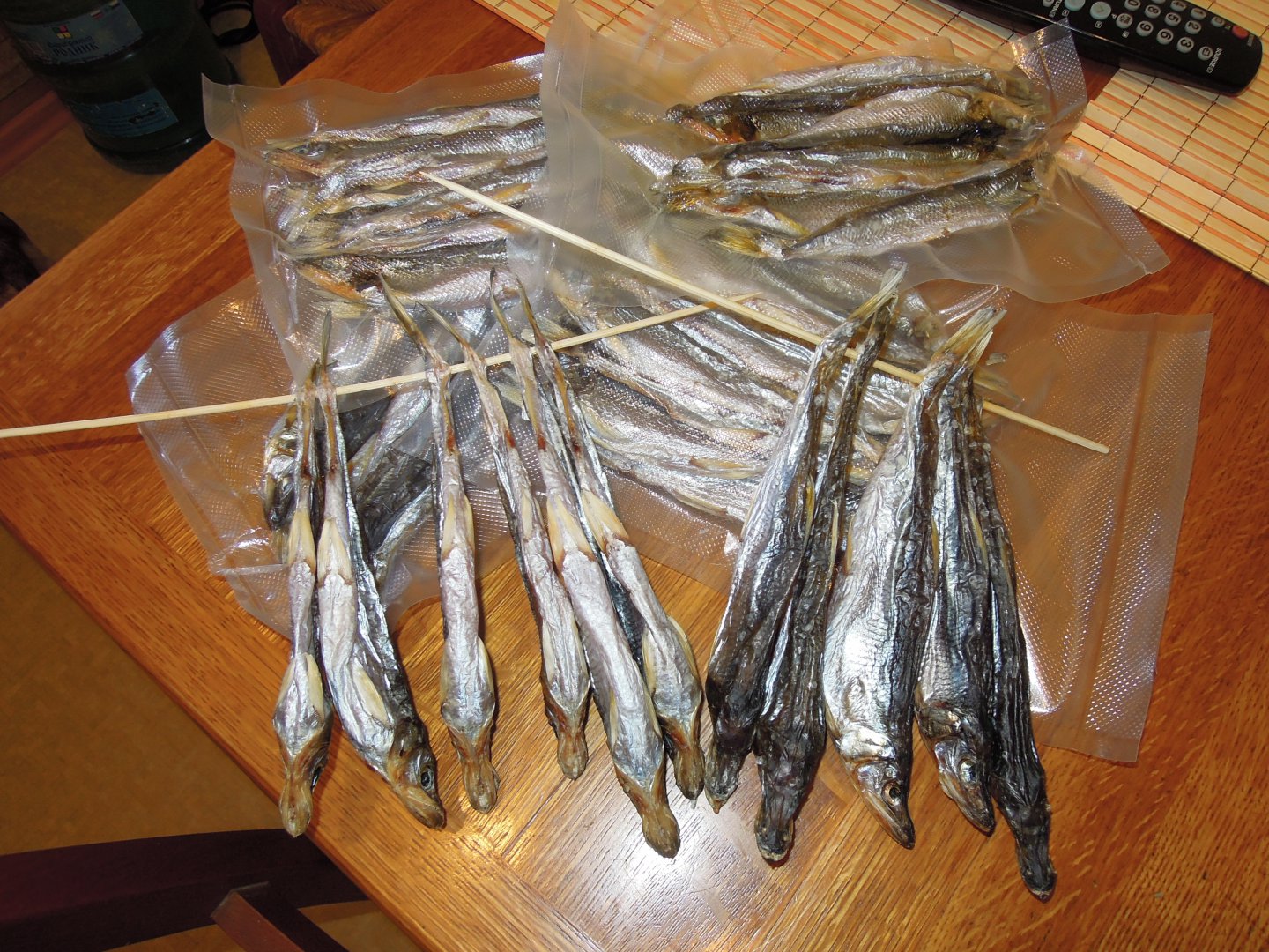 Засол в тузлуке-какая чушь. Все корюшки-зубатки -соль стакан на ведро и на сутки. Пару раз перемешать. Затем промыл-и на вешала. Просаливается вся. Соль выгоняет влагу из рыбы и ты вешаешь ее уже полусухую. Экспресс-метод-поставь вентилятор,пусть дует. Зимой приходилось так-корюшка на рамках у батареи отопления,в метре масляный радиатор,еще в полуметре-вентилятор. Форточку открываешь,дверь закрываешь и на ночь. На следующую ночь-повтор,и корюшка готова. Так делал на Сахалине ,и всегда. Это корюшку и зубатку. Весенняя постная,икра все соки вытянула,А вот осенняя-жирная,и с ней возни больше.