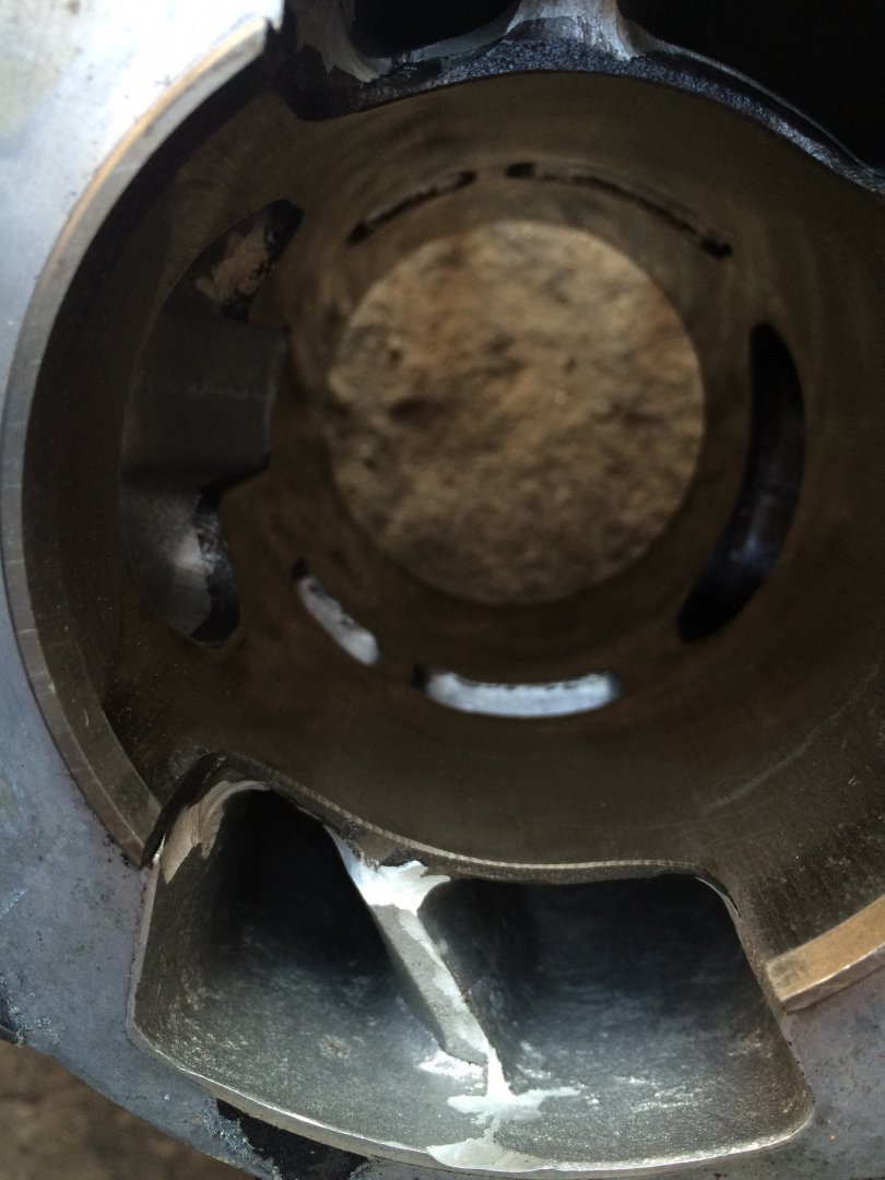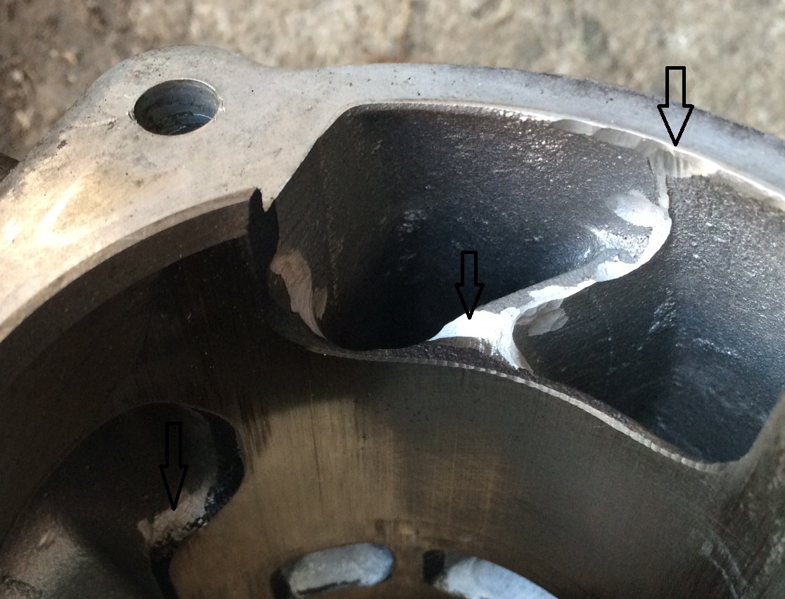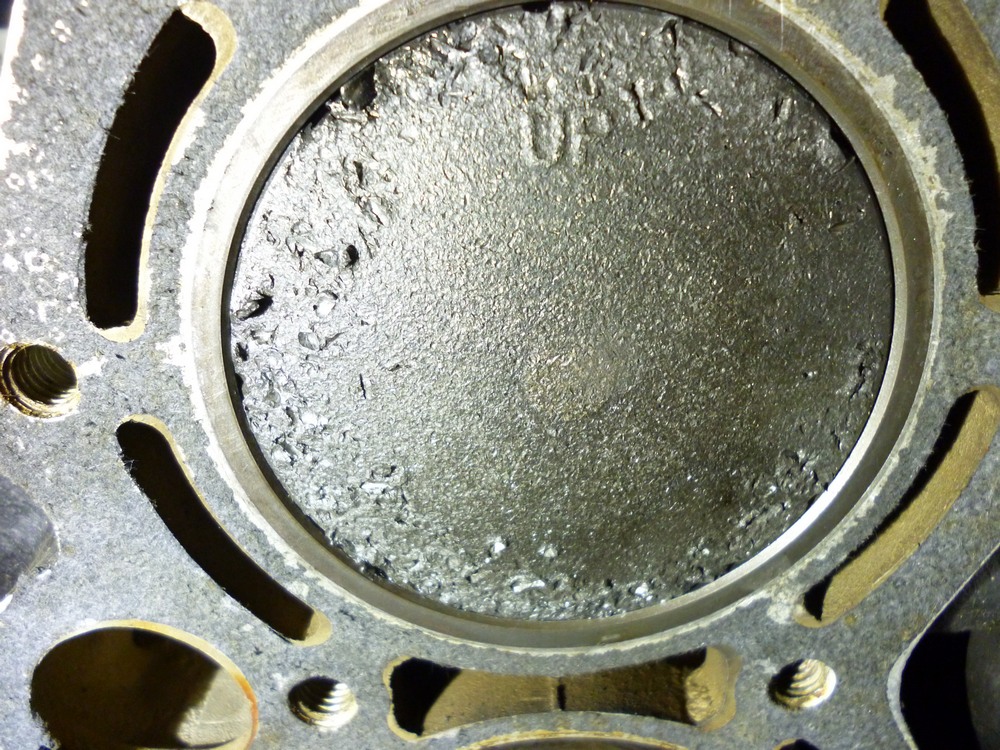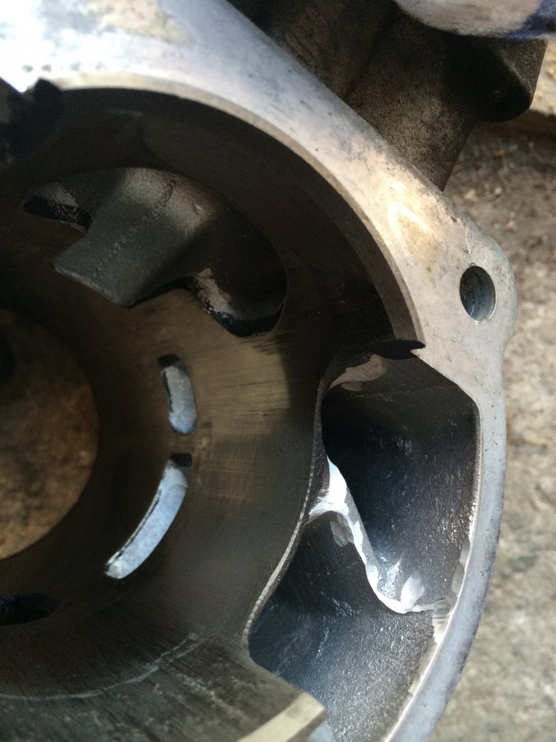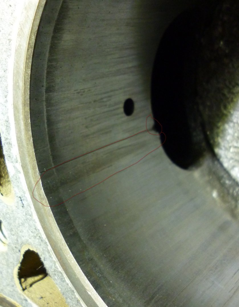 видно задир на впускном окне цилиндра и глубокая царапина по всей длине стенки цилиндра.