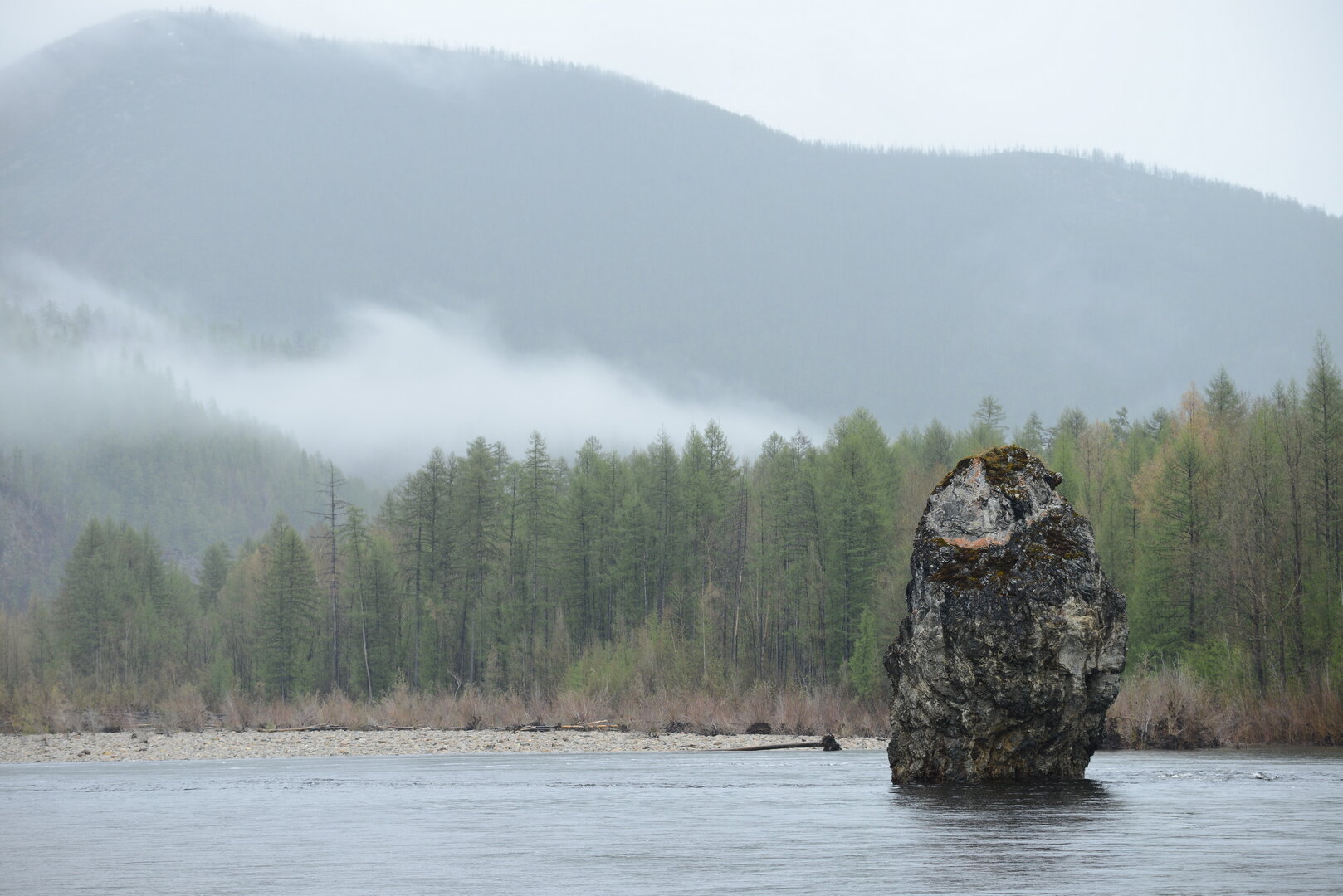 Остановились в шикарном рыбацком месте на косе напротив скалы с ямой. Дождя у нас не было, но в верховьях долго грохотала гроза. Как выяснилось, там прошел ливень. В верховьях огромный водосбор- сливаются две реки -Аюмкан и Кун Манье. А ниже река входит в ущелье и мы находились в самом узком месте. Мы ловили ленков, собрались варить обед. Услышали какой то непонятный гул, который становился все сильнее.
