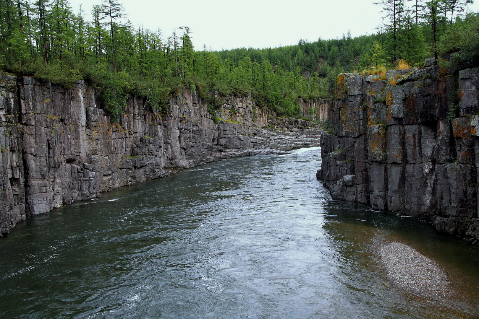 Зева,приток Бикина-27 км течёт в трубе,когда с 2х сторон высокие скалы.